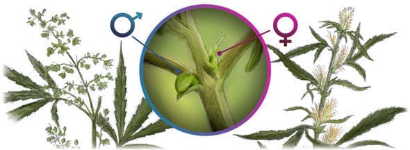 Im Normalfall trägt eine weibliche Hanfpflanze ausschließlich weibliche Blüten und eine männliche nur männliche Blüten. Jedoch kommt es vor das z.B. eine weibliche Hanfpflanze eine oder mehrere männliche Blüten bildet.