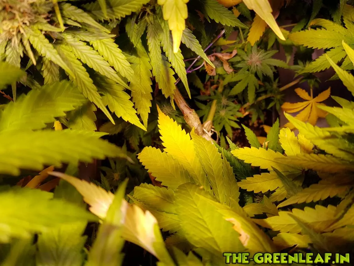 Die Pflanze wird mit Canna Terra Flores gefüttert (50ml/10L). Ich habe die Beobachtung gemacht, dass immer mal mehr Blätter absterben und sich vergilben.