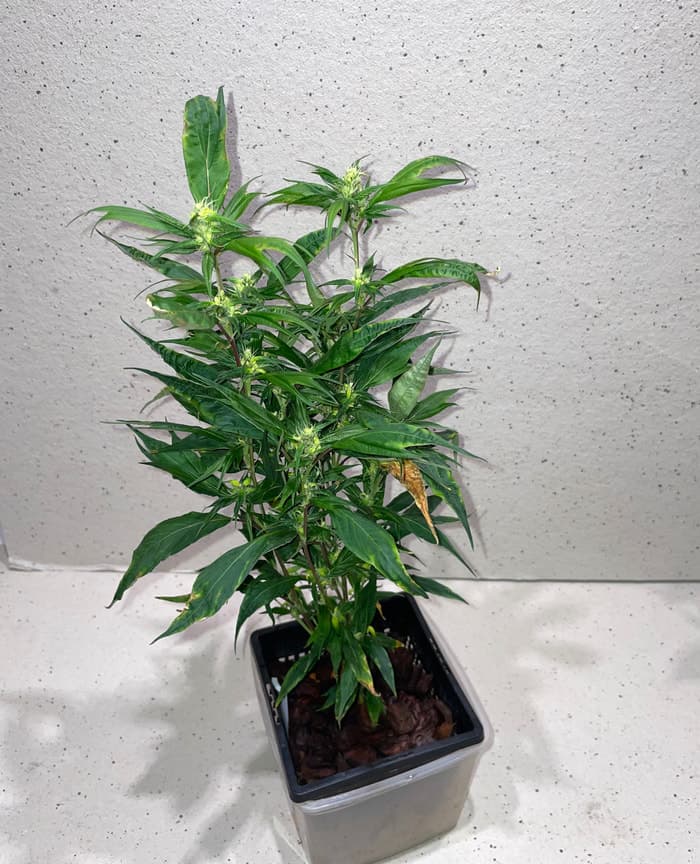 Die hat viele von den komischen nicht gecknackten Calyxen, die noch voll von Stigmen sind. Hat man auch bei nur 10 Stunden Licht.