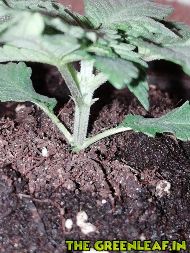 08.06. Die erste Pflanze bekam über Nacht gelbe Keimblätter, diese hingen schon am Stiel herunter, so schnitt ich sie ab. Nach Begutachtung der anderen Dreien, entschloß ich mich, obwohl die Keimblätter noch relativ gesund aussahen, diese auch mit abzuschneiden,da sie trotz alledem komplett von den anderen Blättern in geringem Abstand verdeckt wurden.