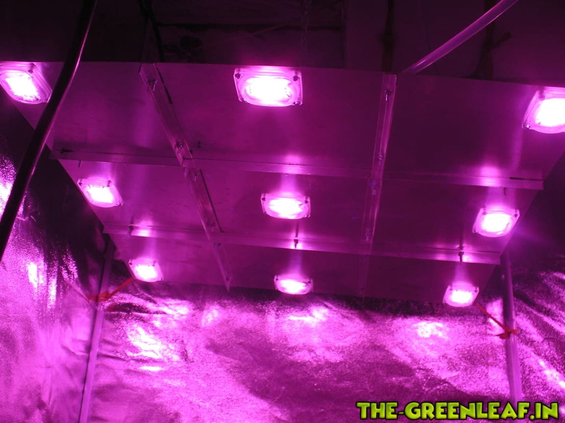 9 china cobs, das einzige problem was dadurch wieder aktueller wurde war dann der hitzestau im zelt wobei ich zu dem zeitpunkt noch nicht wusste das ich mir direkt direkt ne neue abluft hin hänge... (war ursprünglich für den letzten grow gedacht aber die chinamänner haben ein klein wenig zu lang gebraucht um alles anzuliefern...)