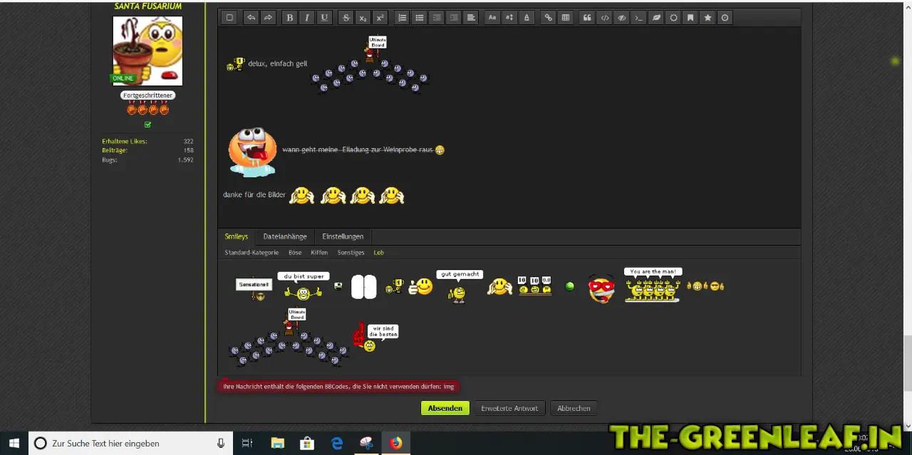Geb ich mehre Smilys bei einer Antwort ein: Erscheint bei mir diese Meldung in rot: