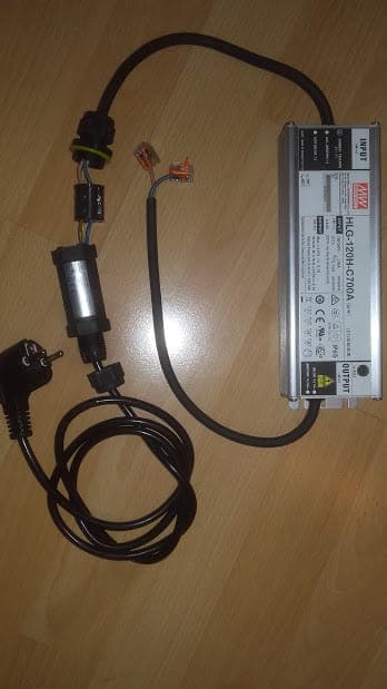 Die A Version (HLG 120H C700A) hat den Poti im Treiber verbaut & die Bestromung wird mittels Schraubenzieher (sehr ungenau) von 50-100% geregelt (350mA - 700mA). :huh: