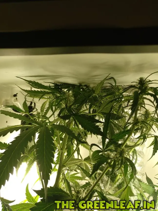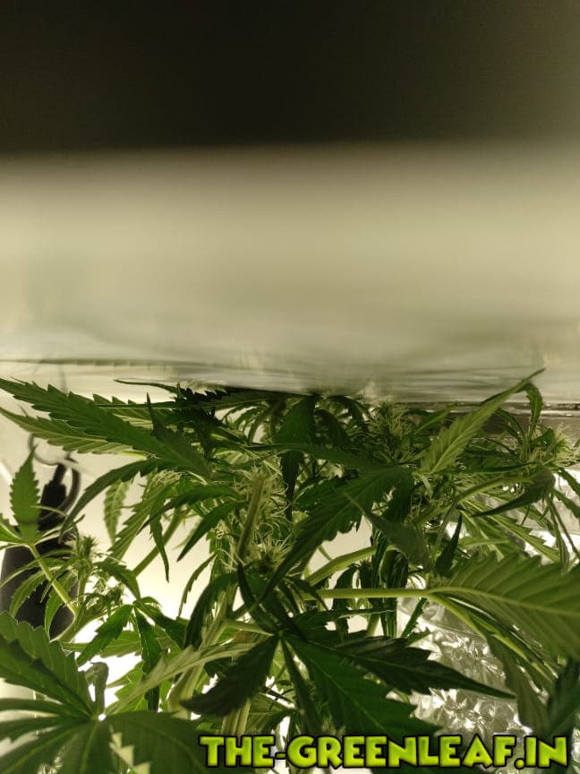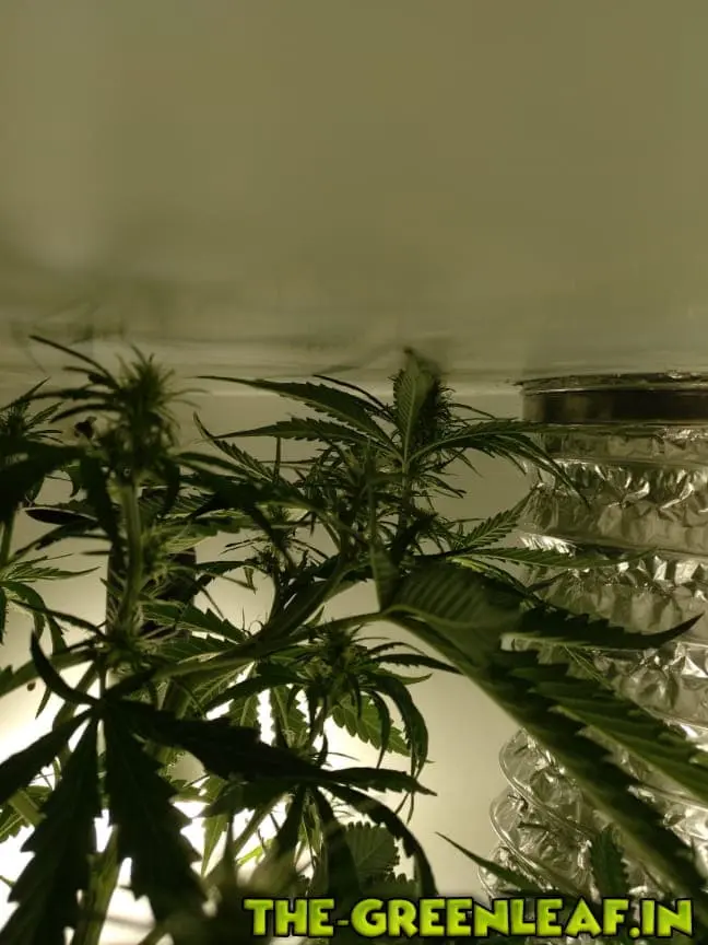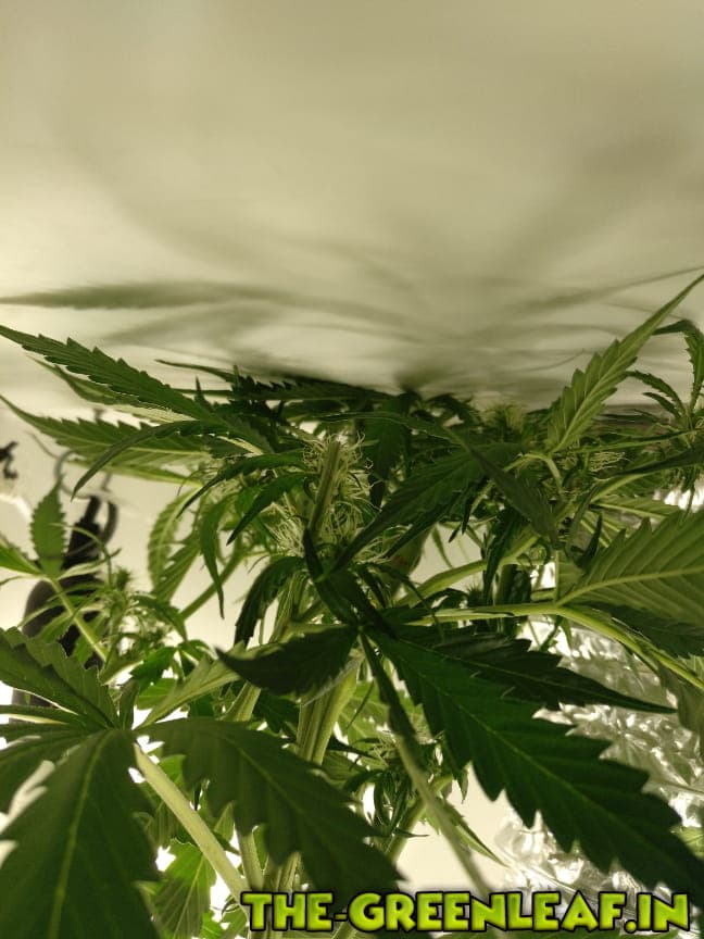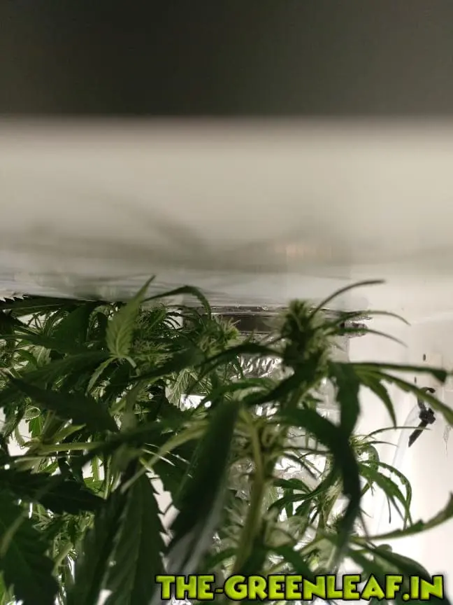 Problem: Pflanze wird viel zu groß, kann aber nichts dagegen machen. Der Hauptstrang wurde nun einmal um 90° geknickt, geht von der vorderen Decke bis zur hinteren und küsst nun die Decke. Kann es leider nicht ändern, jetzt ist Schluss.