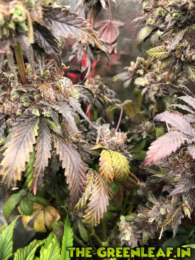 Hier seht ihr die unglaublichen Auswüchse direkt aus den Buds... wie erklärt Ihr euch das? Unsere Vermutung ist, dass durch den viel zu hohen ph-Wert keine Nahrungsaufnahme stattfinden konnte...deshalb auch die krassen Verfärbungen an den Blättern...