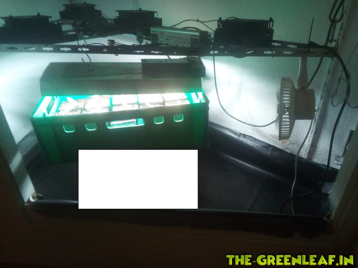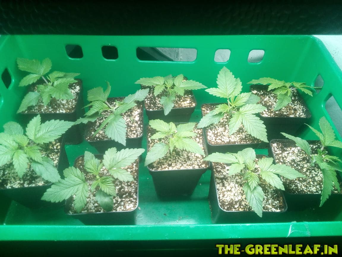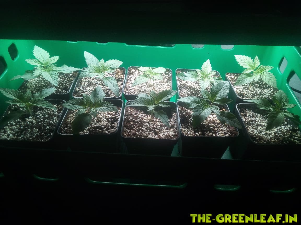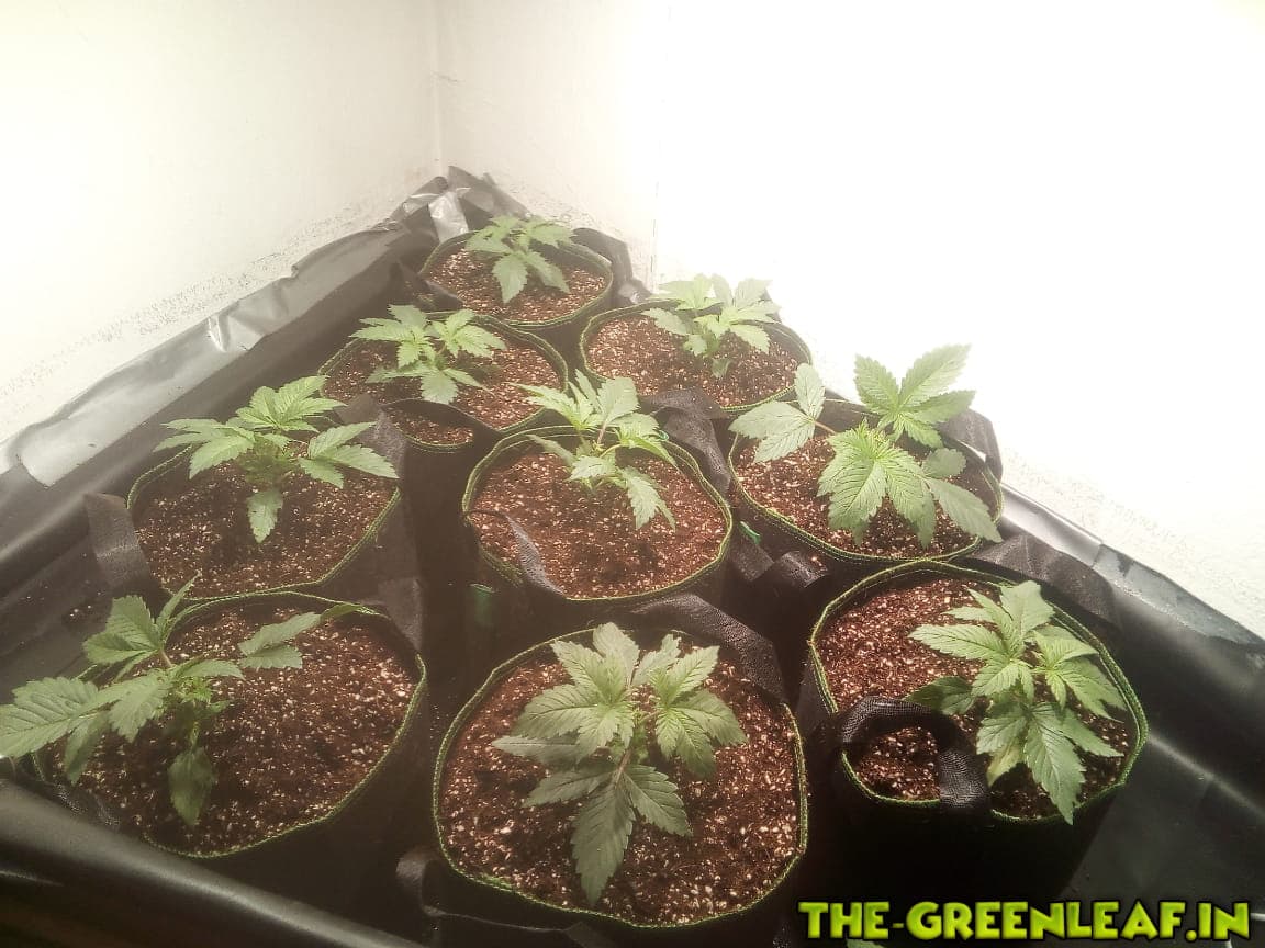 Nun ca 2 Wochen 18/6 unter 2x27W LED, dann schon in 12l Stofftöpfen auf 12/12 unters Frankenstein Panel, für ca 4 Wochen.