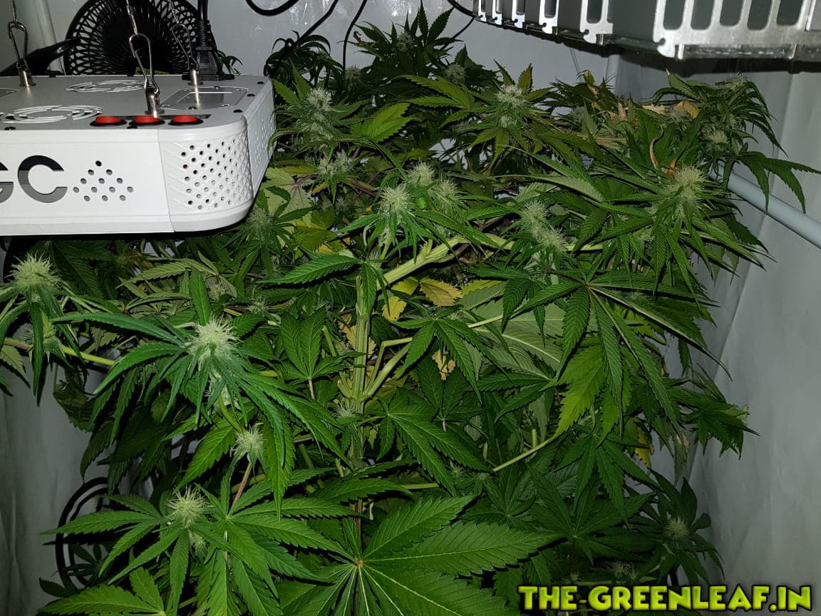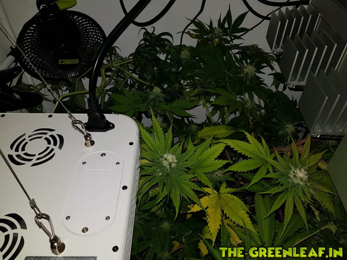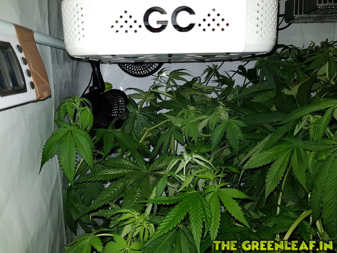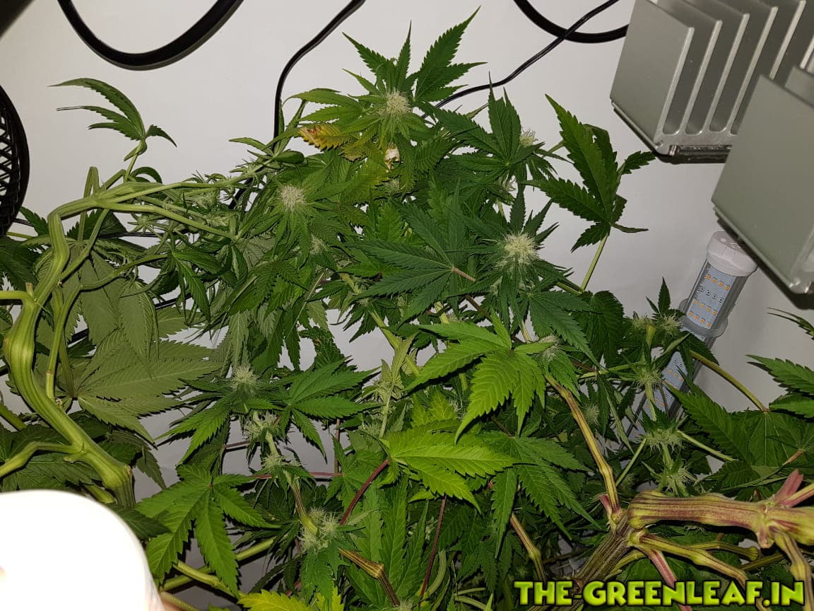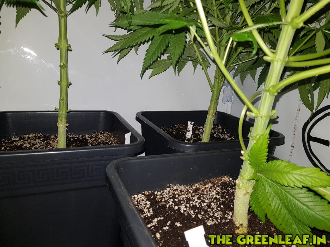 Die Damen wurden auf 65-70cm runtergeknickt nachdem sie wieder in die Lampen gewachsen sind. Man sieht auch deutlich einige Blütenansätze