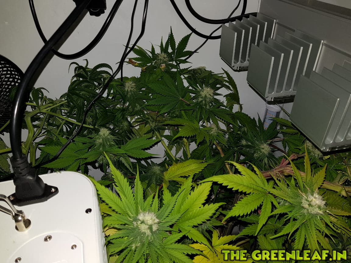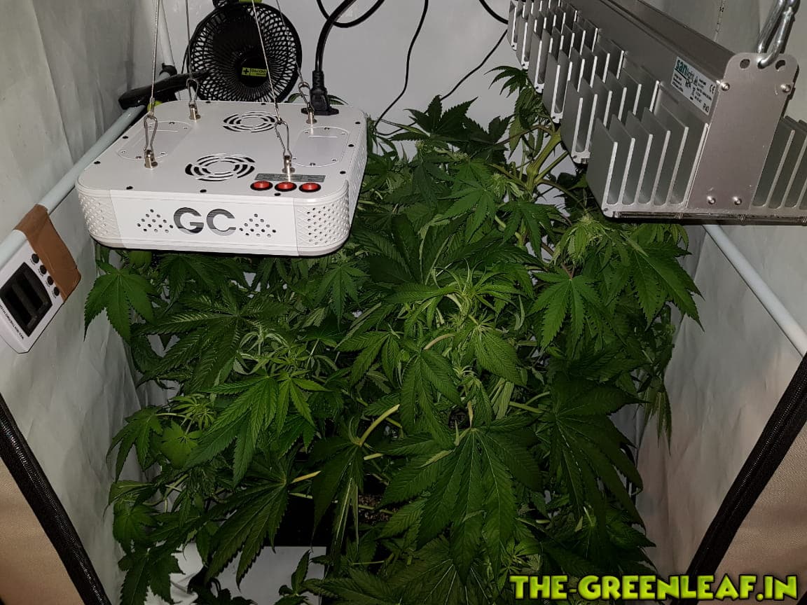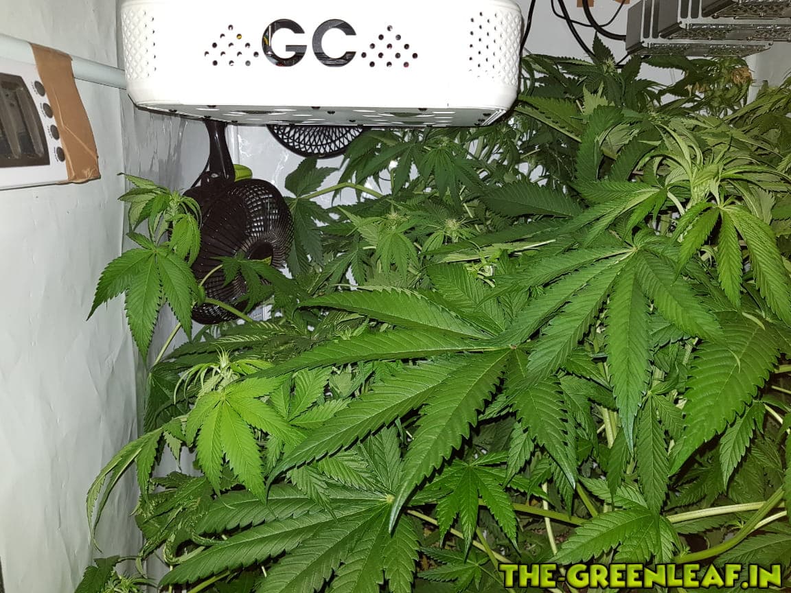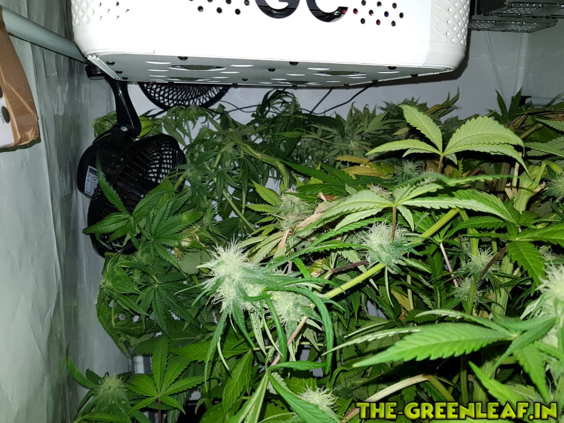 Die Damen wurden auf 65-70cm runtergeknickt nachdem sie wieder in die Lampen gewachsen sind. Man sieht auch deutlich einige Blütenansätze