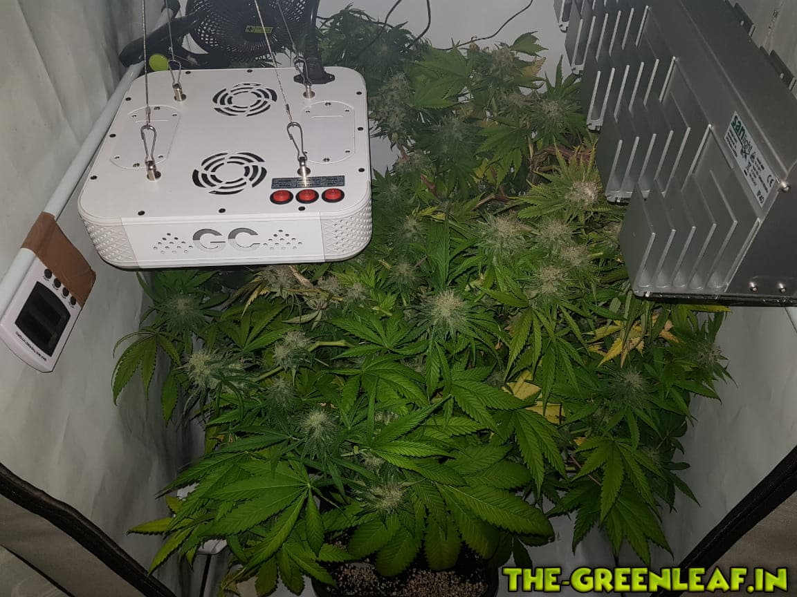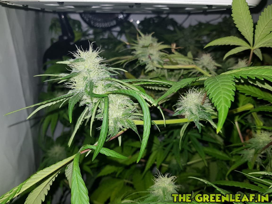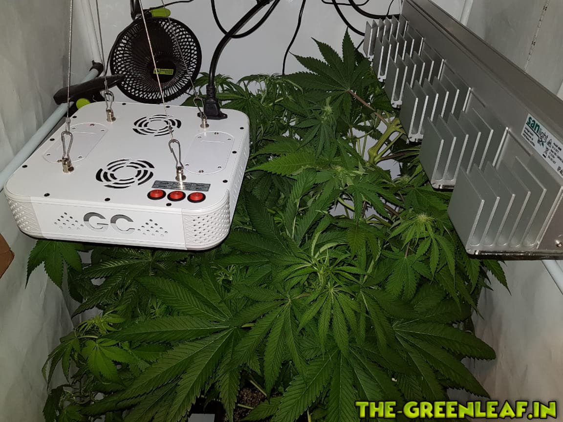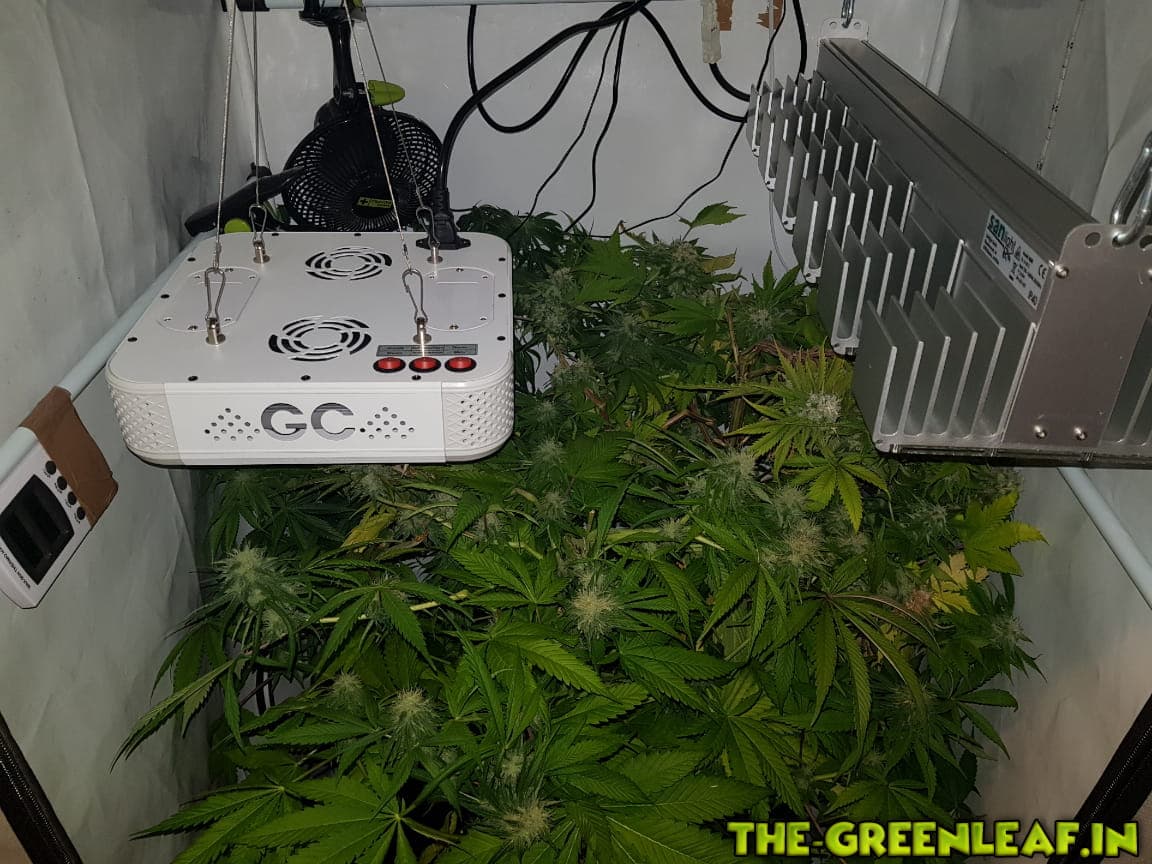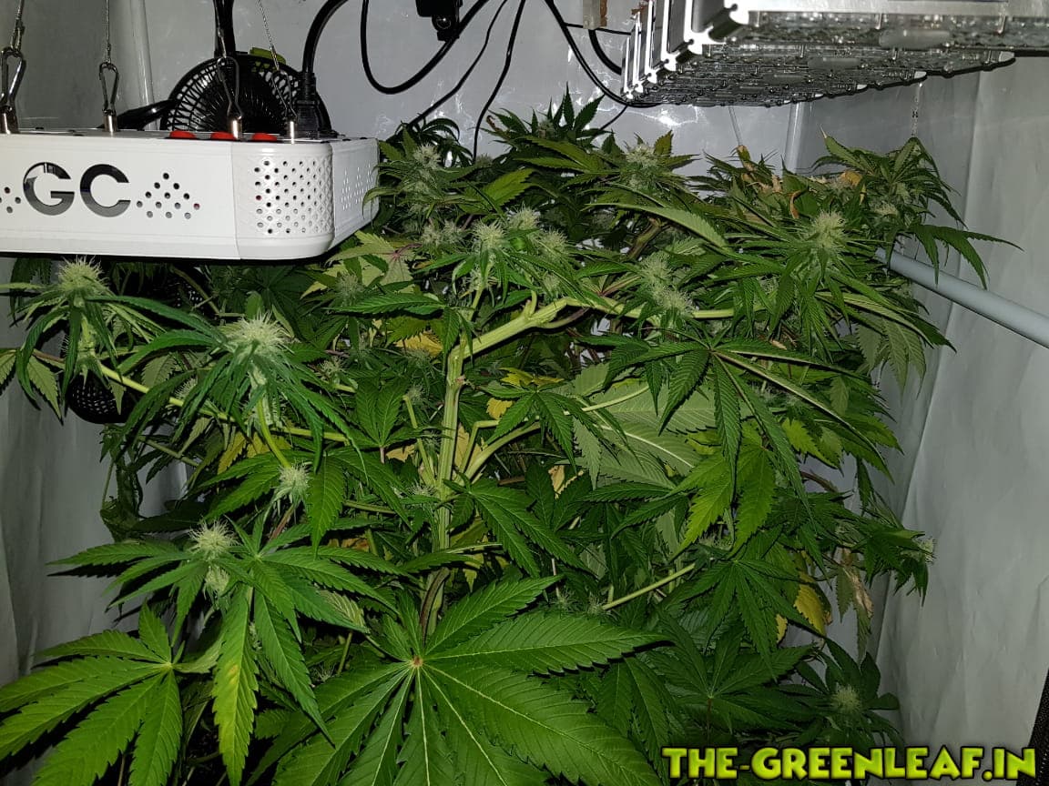 Die Damen wurden auf 65-70cm runtergeknickt nachdem sie wieder in die Lampen gewachsen sind. Man sieht auch deutlich einige Blütenansätze