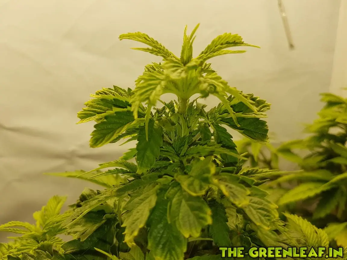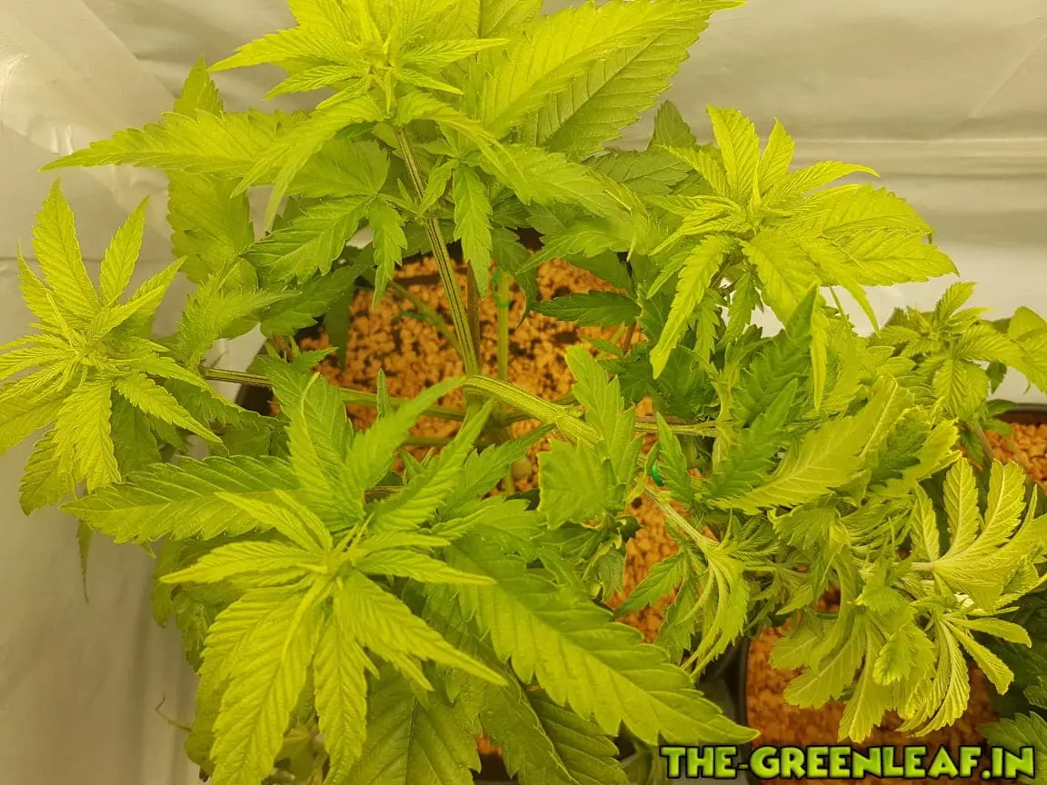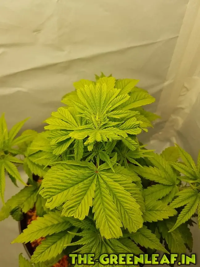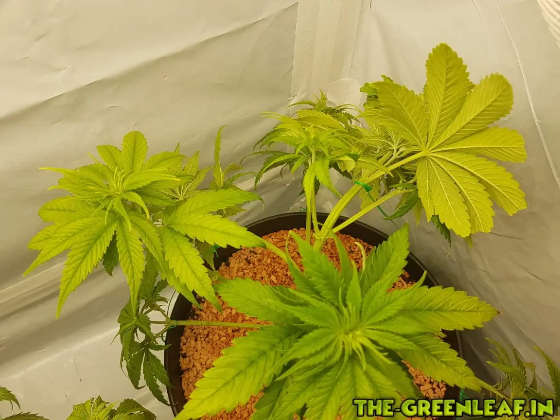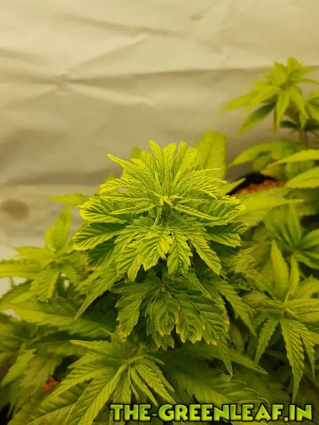 Alle Pflanzen sind noch in der Vegi und haben letzte Woche jeweils einen Teelöffel Bittersalz bekommen, in der Hoffnung, dass sie etwas grüner werden.