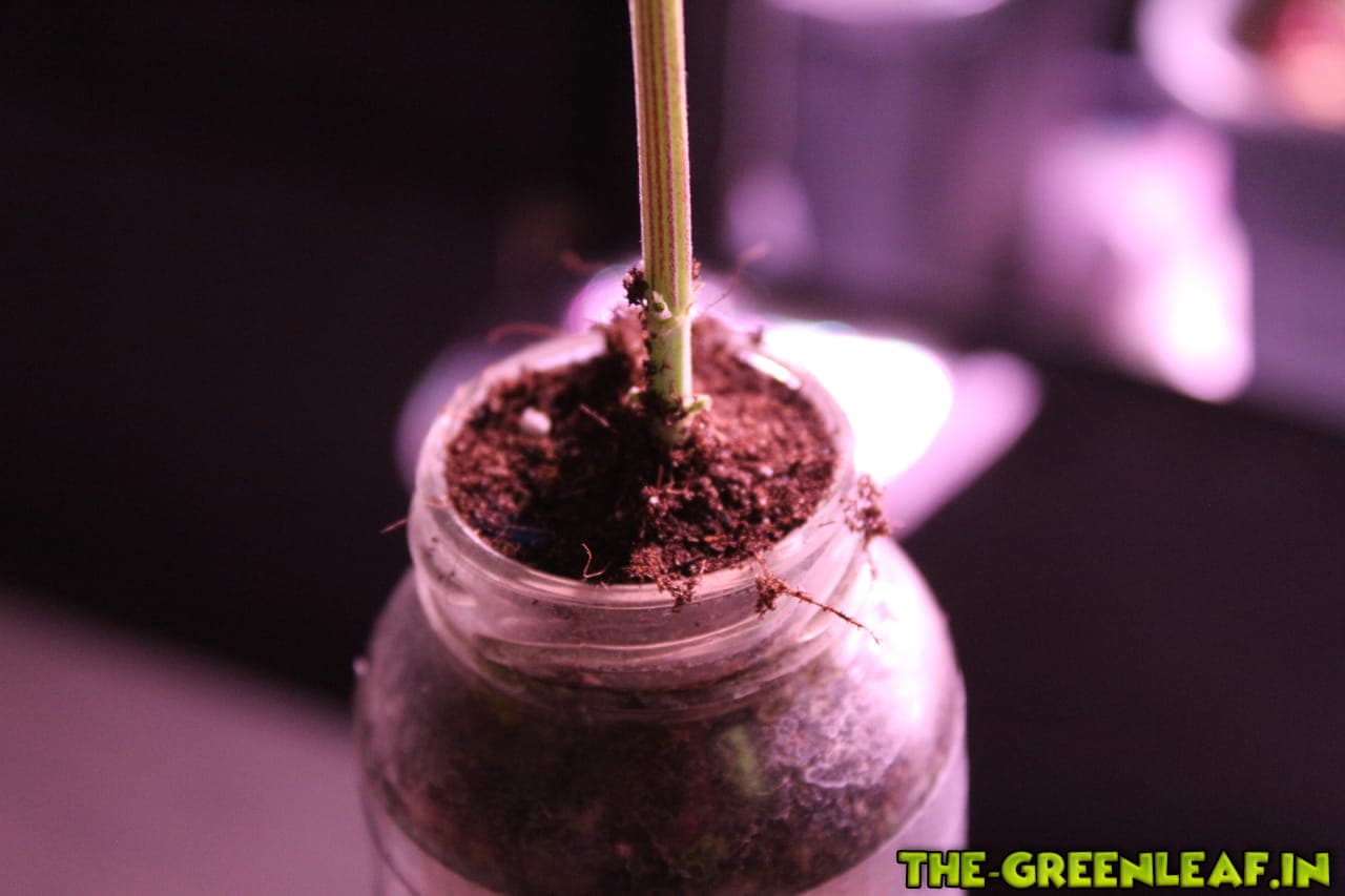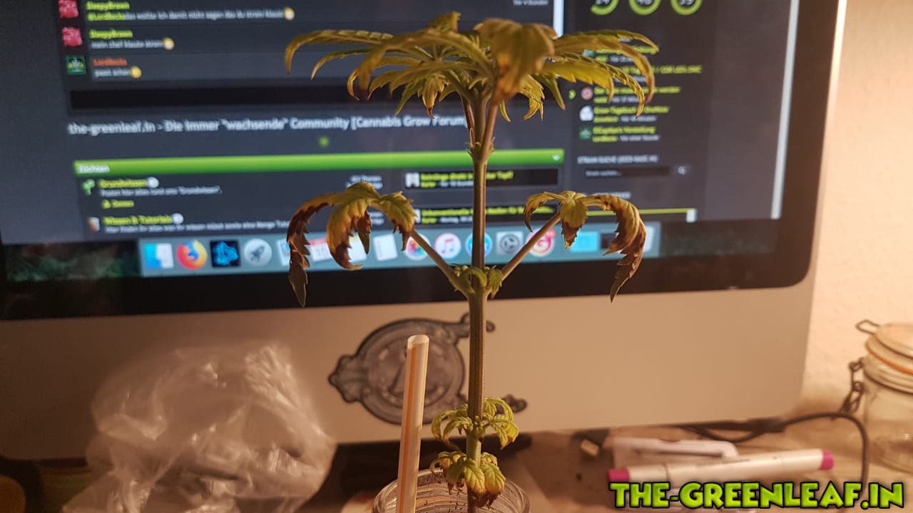 so nun mal zur glaspatientin nr.1 Habe eben mal die braunen knusprigen blätter abgeschnitten und man mag es kaum glauben die zeigt die vorblüte :love: bin gespannt sie steht stabil im Glas habe heute nochmal ne minischicht erde oben drauf zur stabilität we will see :D