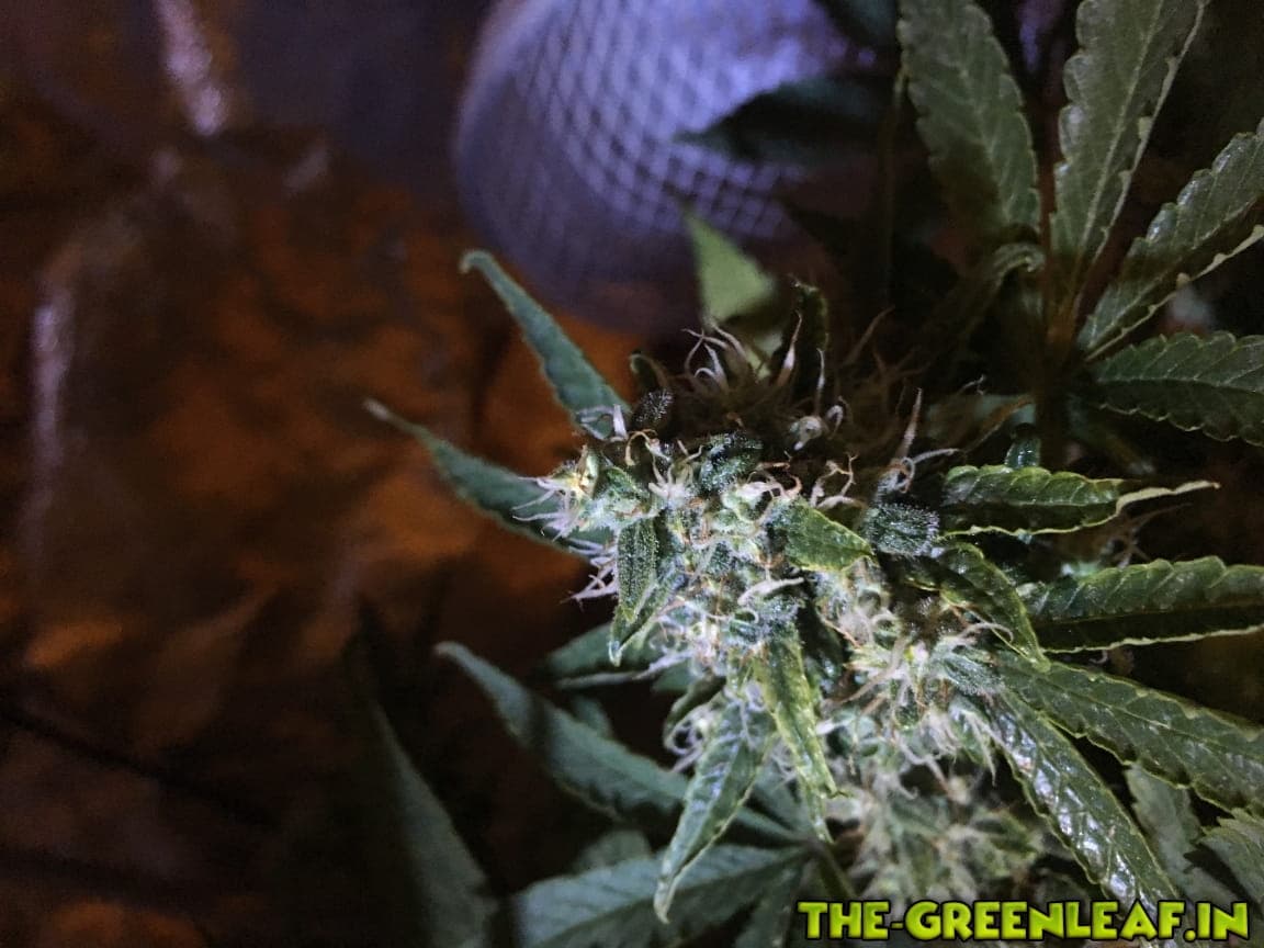 Riechen tut das Ding scon sehr besonders, einfach nur nach Mango. Find ich interessant. Wenn das High noch stimmt bin ich zufrieden, die Buds schwellen nämlich ganz schön an. Würde sagen sehr Sativa-Like.