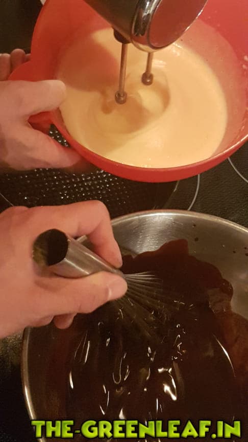 Die HaschSchokolade langsam unterziehen bis alles zu einem glatten Teig verühren