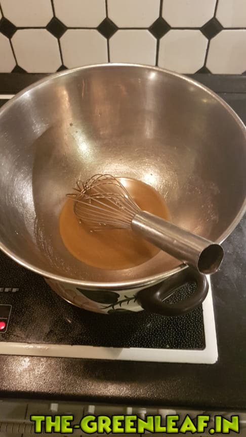 dann die Schokolade in kleine Stücke brechen und mit im wasserbad schmelzen