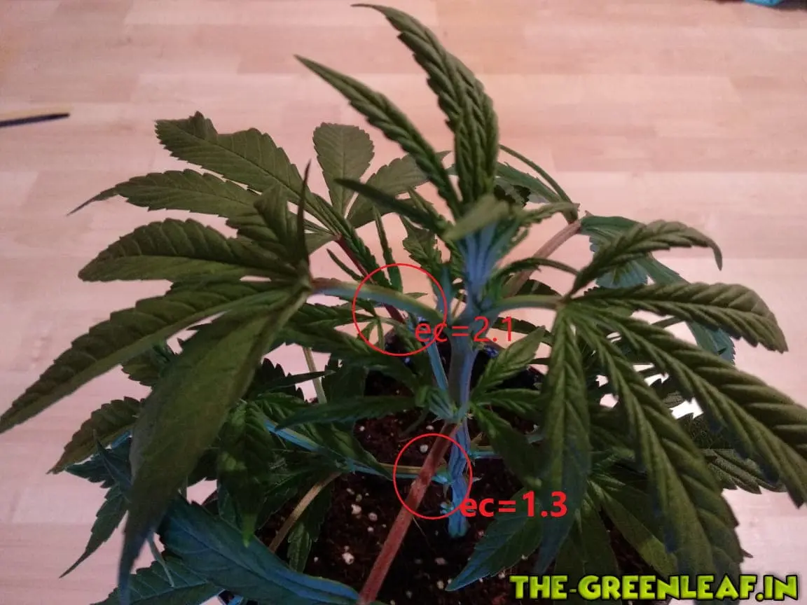 Stiele werden rot? ....= Mangel? und was noch? strainabhängig? seine Erde ist vorgedüngt, zudem hat er noch Dünger verabreicht = ...zusätzlich hat er immer mit zu wenig Wasser gegossen = Salze sammeln sich an = Überdüngung. imho ist in einer 11 Liter Erde genug Futter