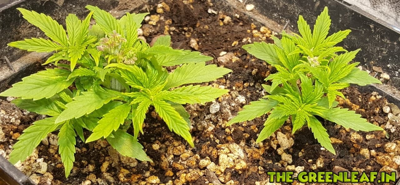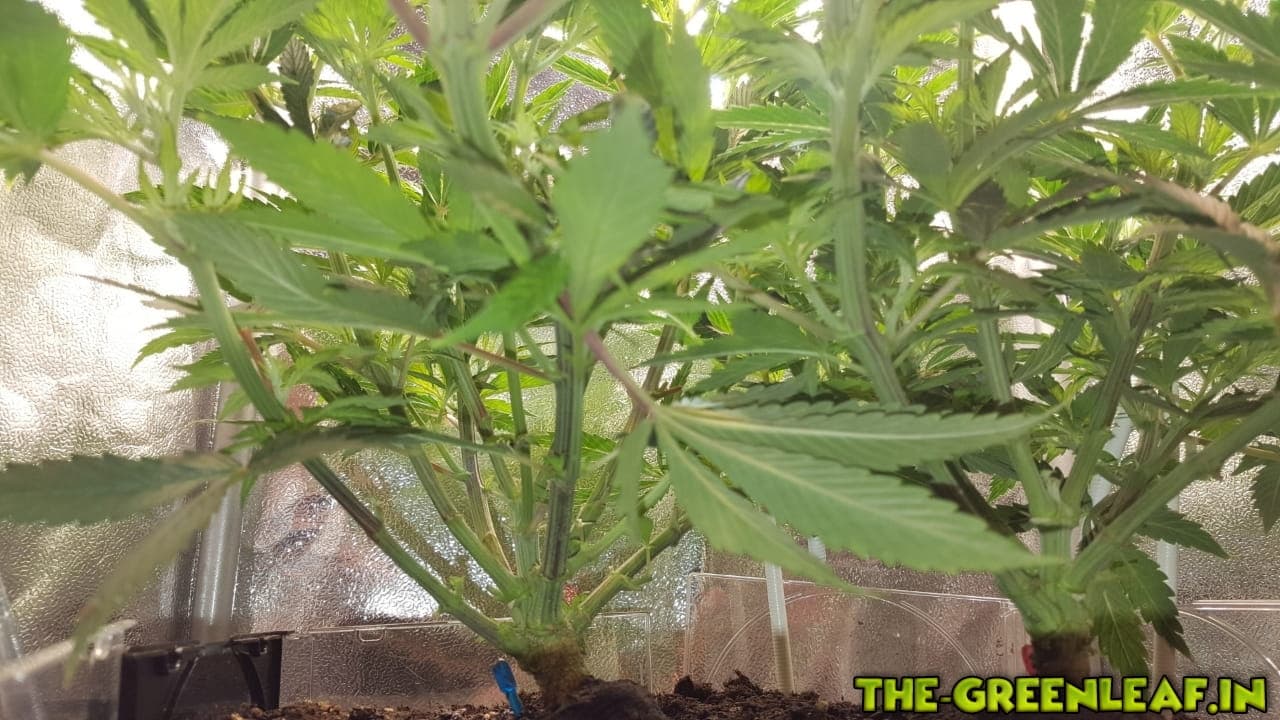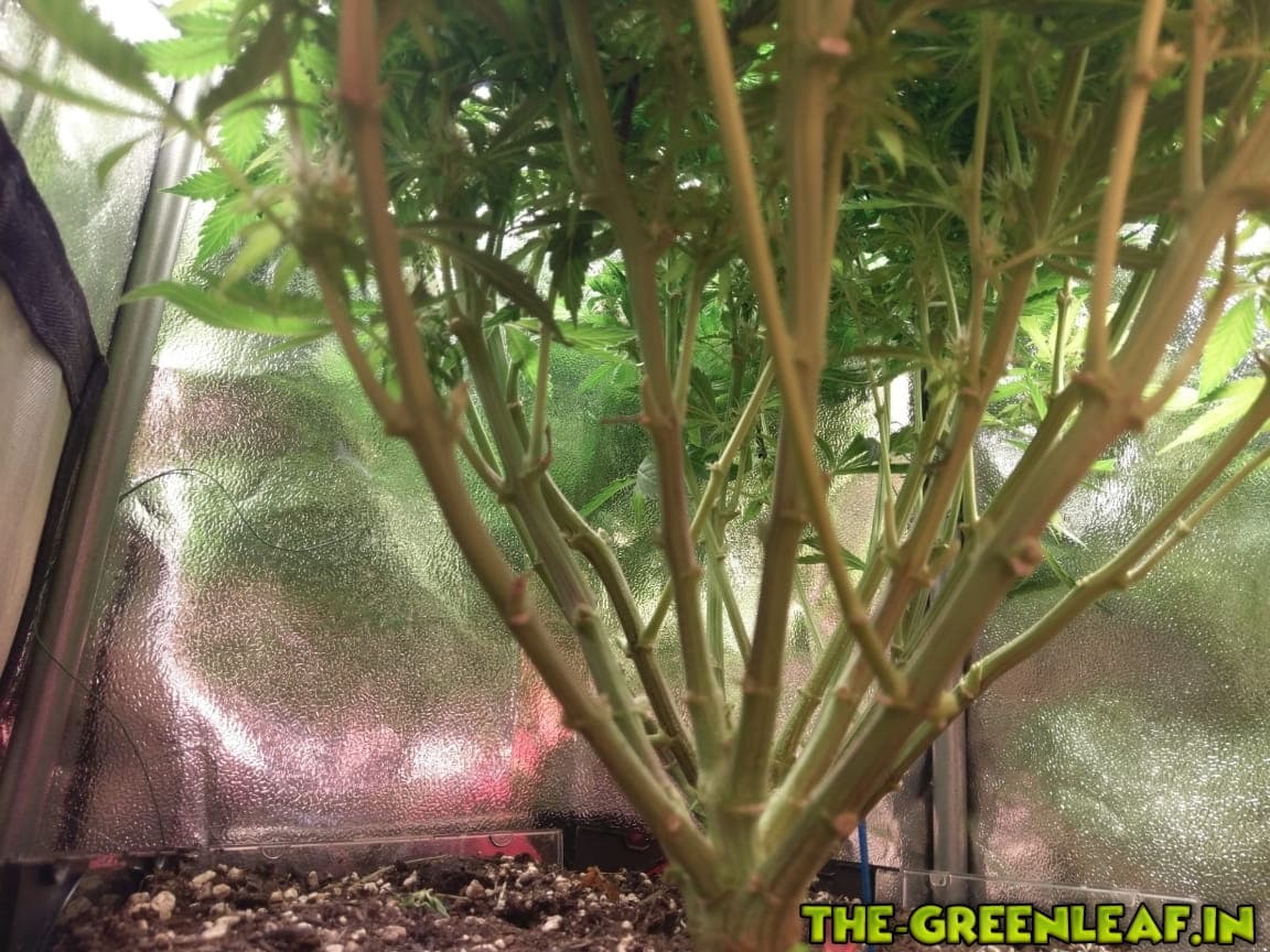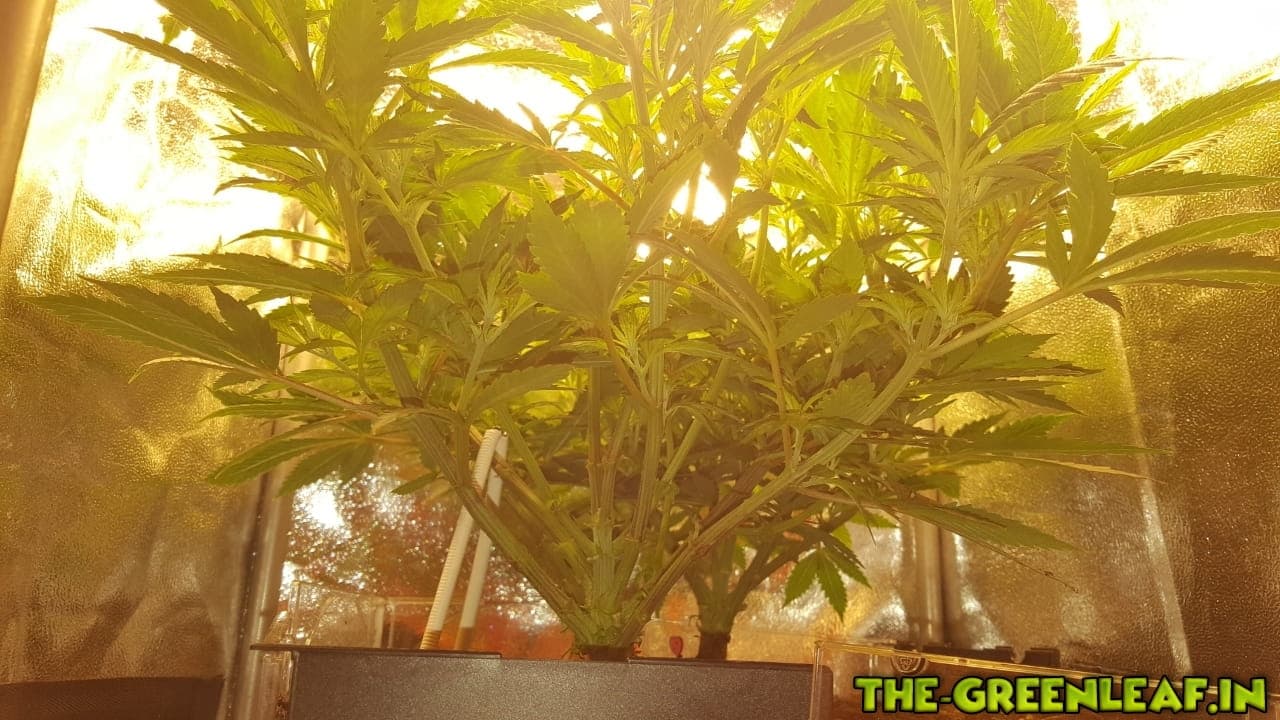 Der / Die / Das Schuldige, ist eine der Think Different Automatic. Hatte ja beide Autos getoppt und eine von beiden ist 10 cm hoch mit 20 kleinen Minitrieben die anfangen zu blühen, die andere hat einen Schuss nach oben gemacht und spargelge Internodien + Banana Joe Effekt. Aufgrund dessen, dass es eine automatic ist - und ich die bisher ausschliesslich auf der ersten Nodie befindlichen Hermieteile, als Stressreaktion auf das Toppen deute, werde ich die kompromittierten Teile entfernen und weiter beobachten. Sehe ich auch nur eine weitere Banane, fliegt die Uschi raus...