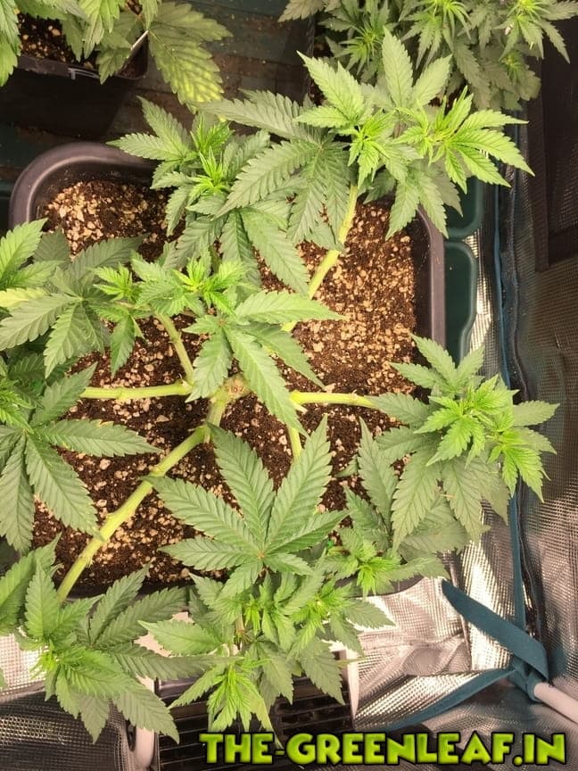 Der / Die / Das Schuldige, ist eine der Think Different Automatic. Hatte ja beide Autos getoppt und eine von beiden ist 10 cm hoch mit 20 kleinen Minitrieben die anfangen zu blühen, die andere hat einen Schuss nach oben gemacht und spargelge Internodien + Banana Joe Effekt. Aufgrund dessen, dass es eine automatic ist - und ich die bisher ausschliesslich auf der ersten Nodie befindlichen Hermieteile, als Stressreaktion auf das Toppen deute, werde ich die kompromittierten Teile entfernen und weiter beobachten. Sehe ich auch nur eine weitere Banane, fliegt die Uschi raus...
