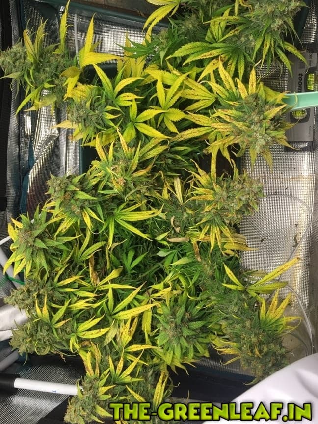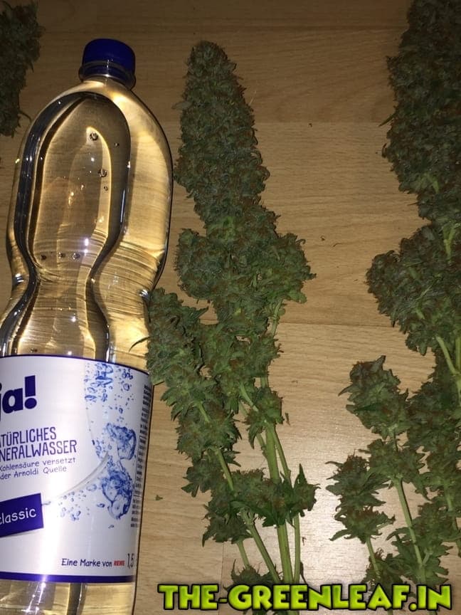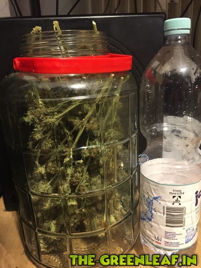 So sah die ERSB am 3 Tag abends im Wasser aus. Die ersten 2 Tage sind die Buds sogar noch etwas gewachsen... :D Am dritten Tag fingen die Blätter an schlapp zu werden. Insgesamt sind die Blätter alle wesentlich gelber geworden! Das lohnt. Trocknung seit Donnerstag abend im Netz, heute isses Stengel-knack-fertig und geht ins 8 Liter Glas :D