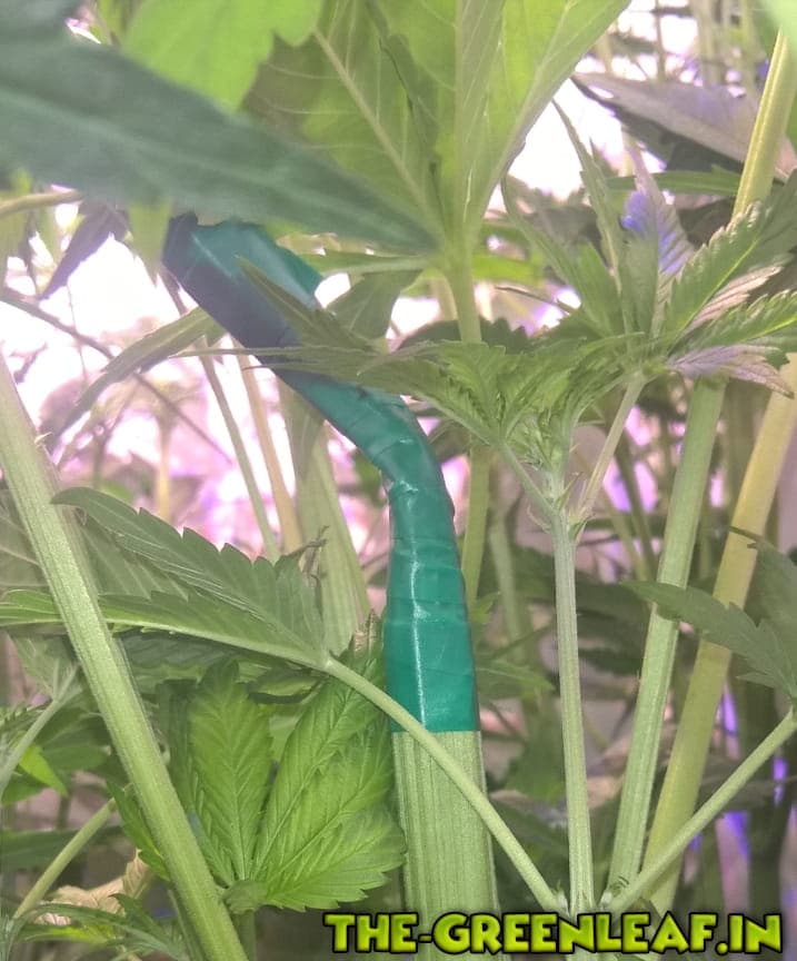 Geschmackssache würd ich sagen, wie wärs zb auf Höhe des niedrigsten Tops oder kurz unterhalb ? (Kleinste Pflanze) Die stelle wo du knickst ordentlich drücken und massieren bis der Stamm weich ist und sich leicht umbiegt, bedenke dabei das sich die Blüten stellen werden also auch nochmal höhe beanspruchen
