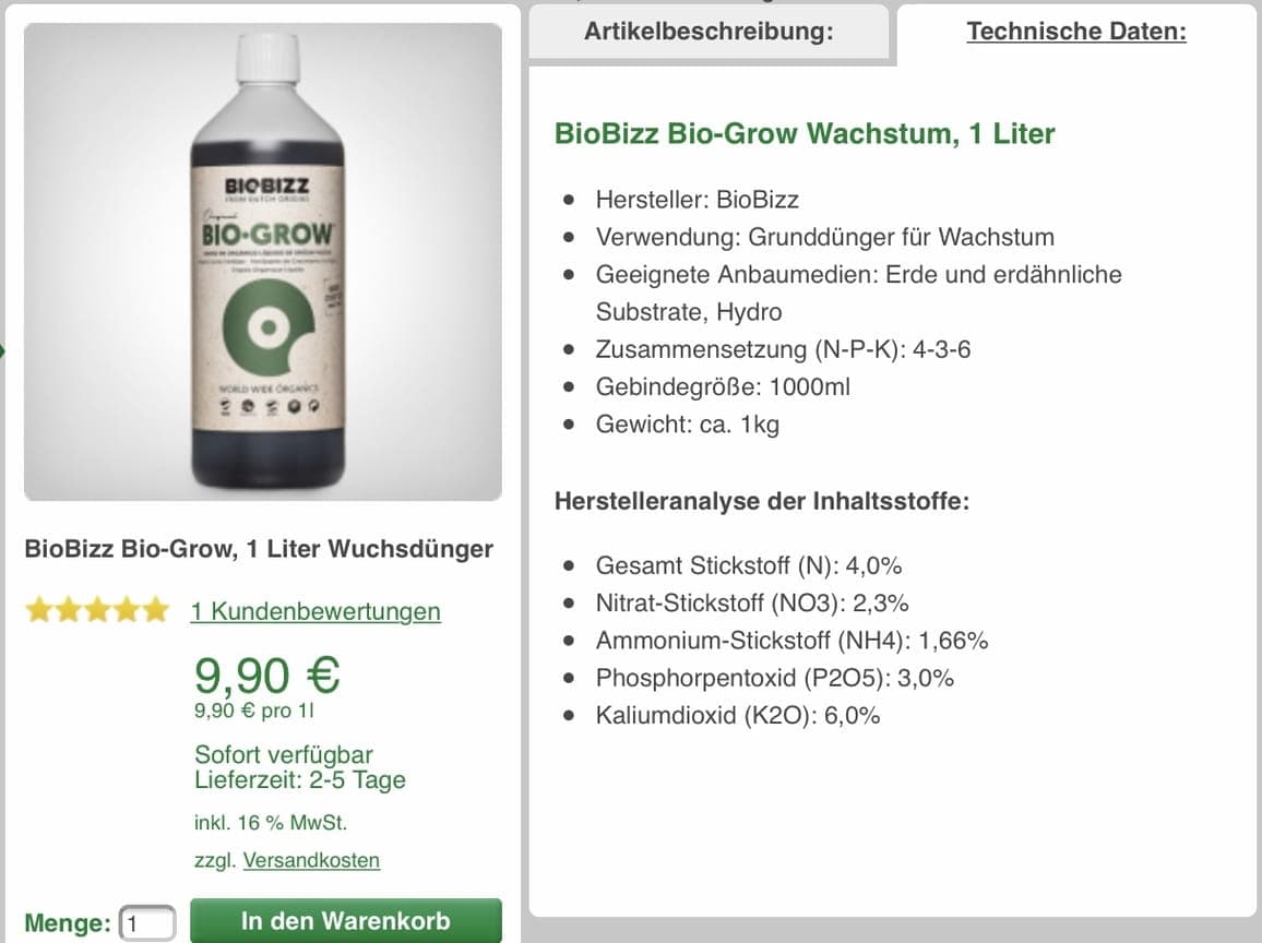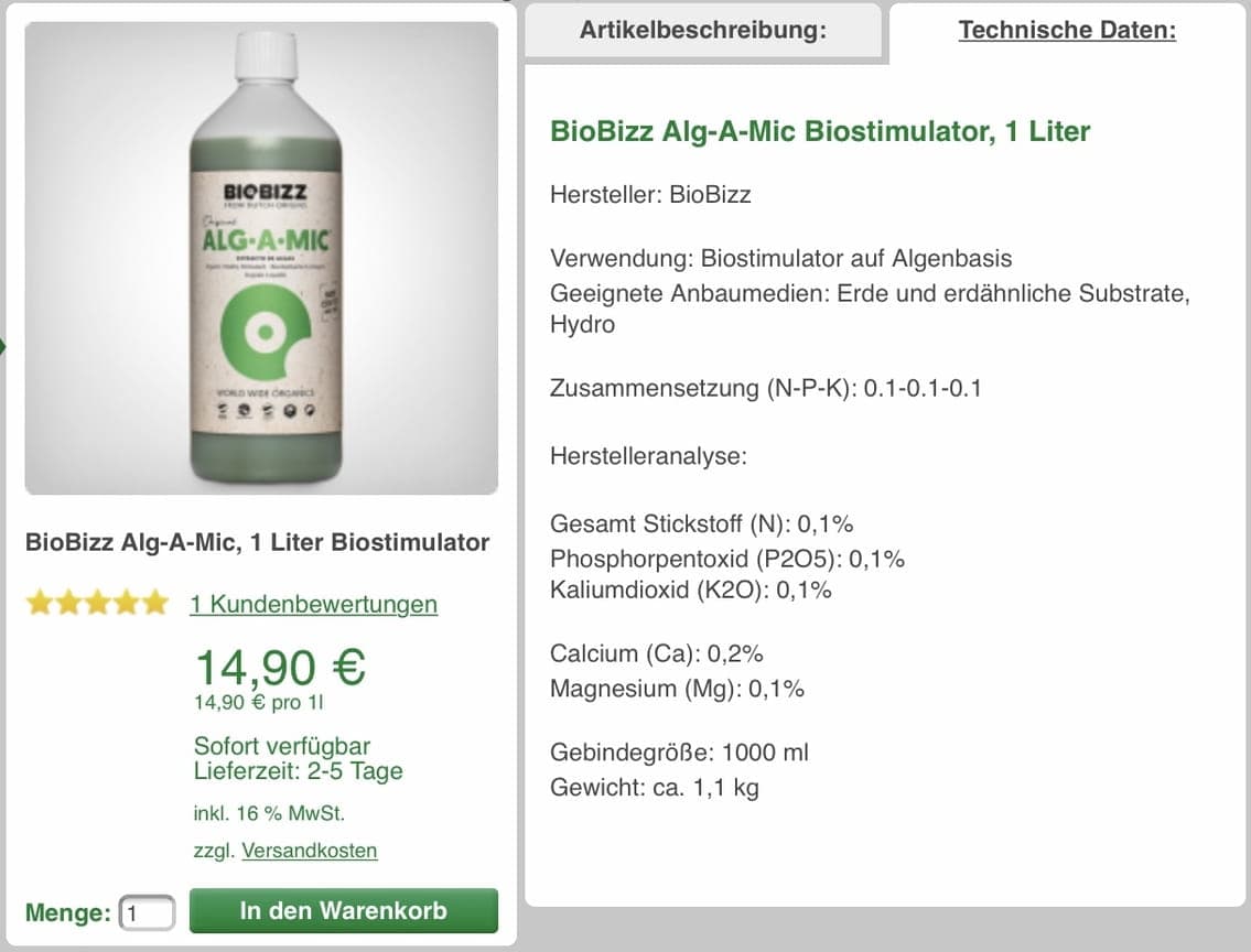 Habe hier auch noch ein Probefläschchen von Plagron's Green Sensation (lol, schon allein der Name!:D). Aber zumindest ist das wohl richtiger Dünger. Bevor's verkommt schütte ich es dazu, so wie die Lieben im Moment futtern wird es sicher nichts schaden.