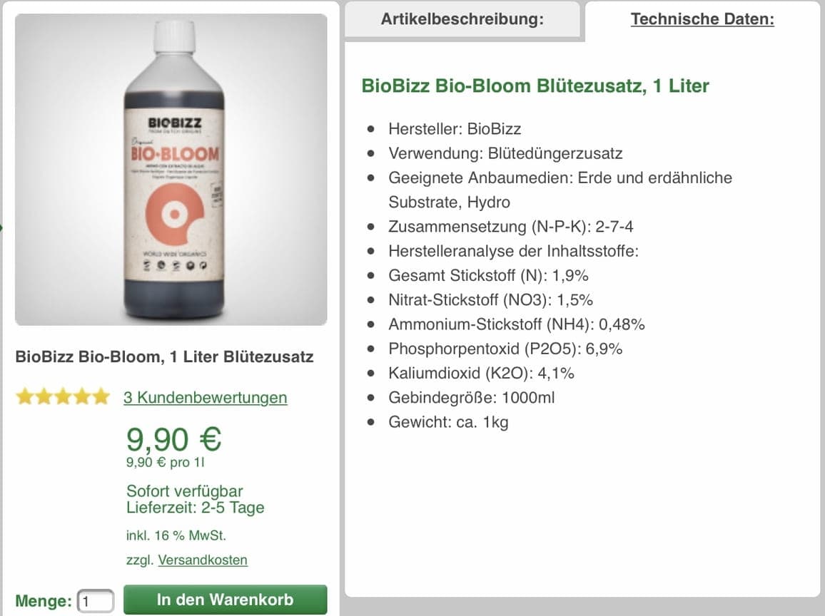 Zunächst will ich die Reste meines Hesi Starterpacks leer machen. Mit dem Bloom und Phosphor+ bin ich vertraut und das hat beim letzten Grow auch alles ganz gut geklappt.