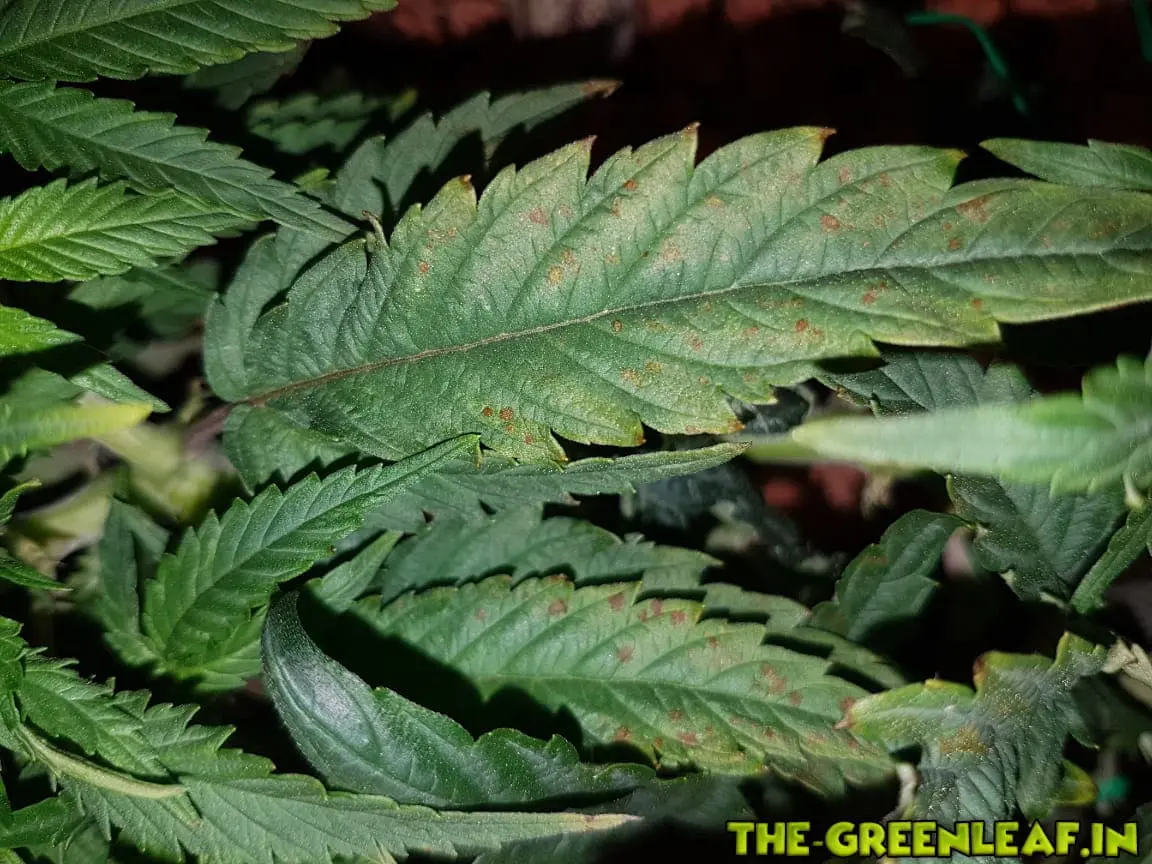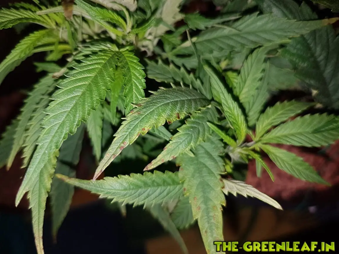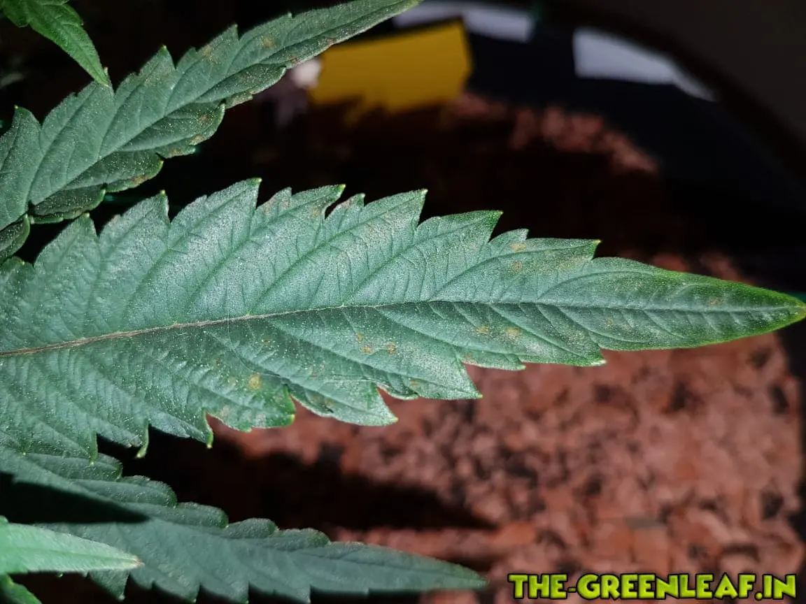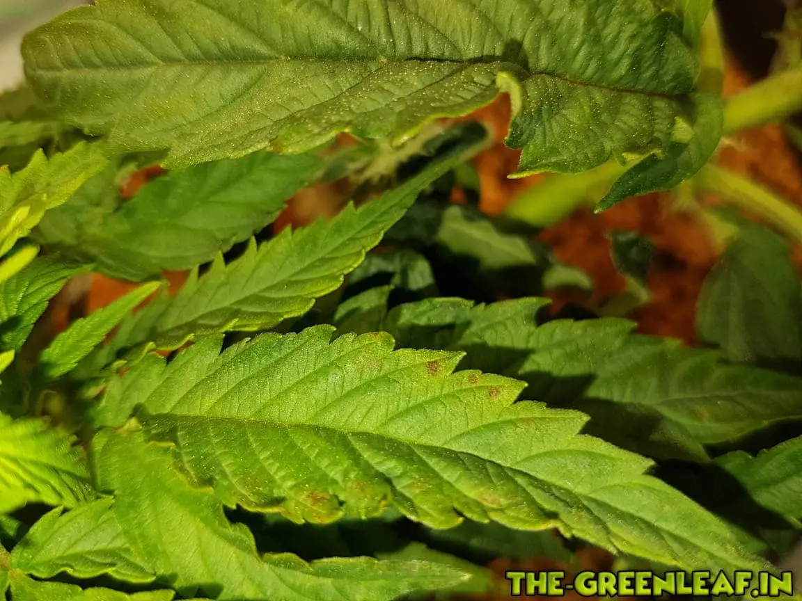 Oder ist es doch was anderes? Die kleinen weißen Punkte auf den Blättern könnten auch Eier sein, oder Trichome, die meisten der alten Blätter kamen aus den übriggelassenen Buds.