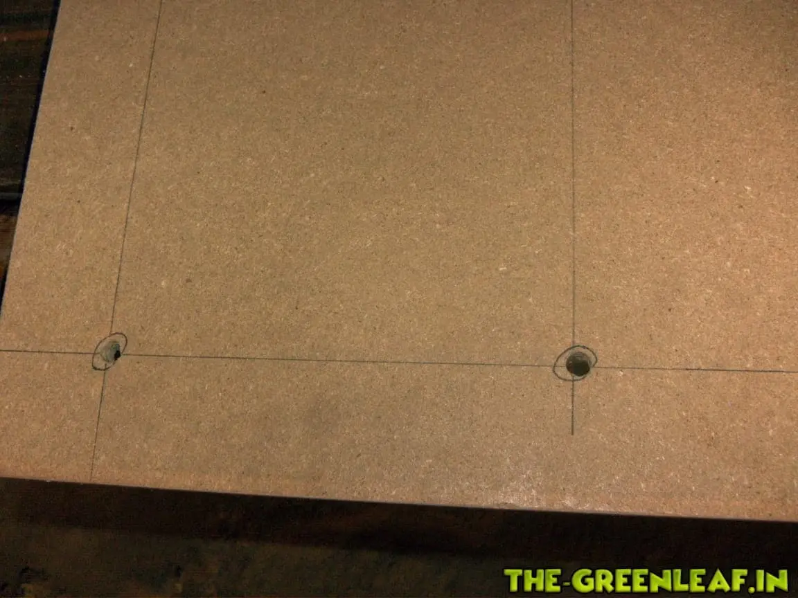 Als ich damit fertig war, habe ich die Löscher gebohrt durch welche ich anschließend die Kabel der E27-Sockel ziehen möchte.![]()