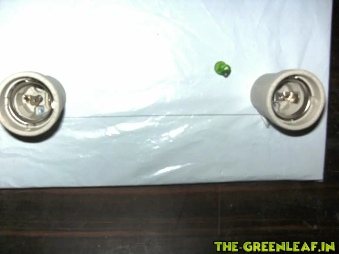 Um die E27-Sockel wirklich ordentlich in einer Reihe zu platzieren habe ich mir eine Hilfslinie gezogen. An diese habe ich die einzelnen Sockel angelegt und sie anschließend mit zwei Schräubchen befestigt. Weiterhin habe ich Löscher für die Aufhängung gebohrt und durch jedes ein Seil aus Polyethylen gezogen welches ich unten einfach mit einem Knoten gesichert habe