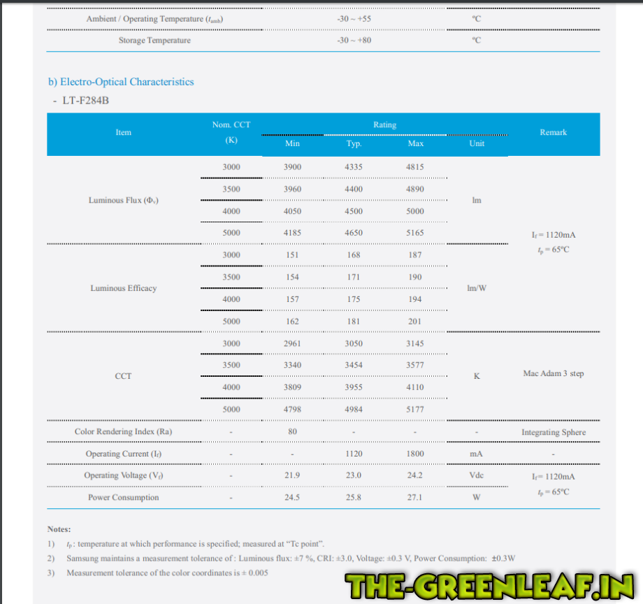 Das ist der Teil mit max 7% Var Luminous Flux bei Umgebungstemperatur (Modultemperatur rechnen die dann max +25°) bis 55° Auf der Seite Ambient Conditions stehen dazu Betriebstemperatur max 85° (mit garantiertem CRI und Lichtausbeute).
