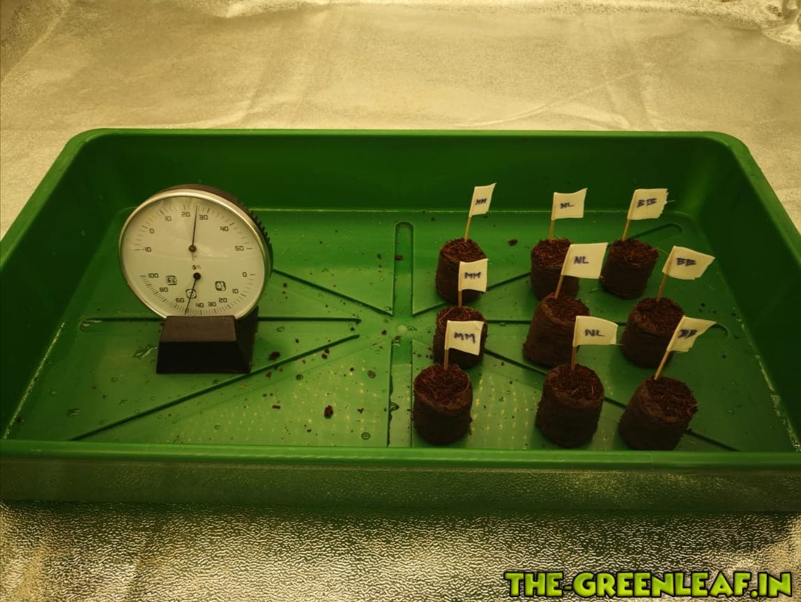 Die Samen wurden zum Keimen direkt in feuchte Jiffys gesteckt. Und in ein Mini Gewächshaus in meiner Growbox platziert.
