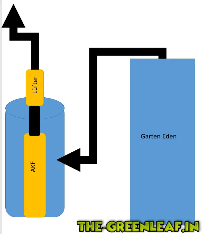 Lüfter saugt die Luft aus dem Zelt in den AKF und bläst die Luft dann raus