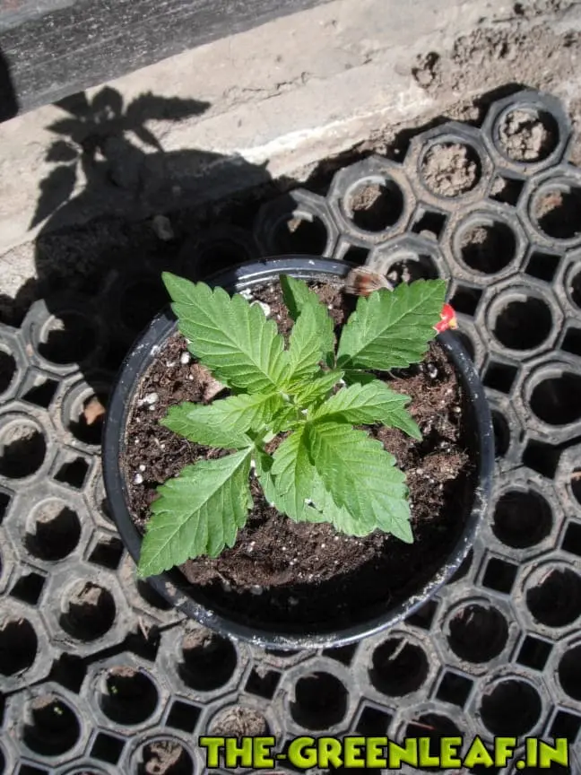 Die Medical 49 ist jetzt knapp ein Monat alt und steht in Bio Bizz Light-Mix und sieht gut aus, bis auf ein bisschen geiles Wachstum vielleicht. Sie steht jetzt tagsüber draussen und abends kommt sie wieder rein und kriegt dann noch ein wenig Ventilator-Luft...