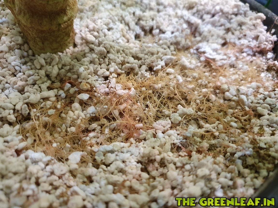 Im laufe der Wochen verdrängen die Wurzeln das Perlit und der inhalt rieselt dann langsam oben raus^^