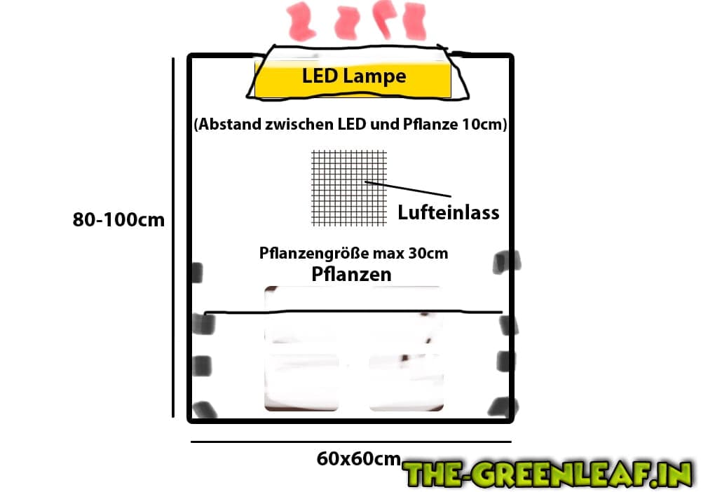 Vorweg sei gesagt das ich Anfänger bin und das es erst mein 2ten grow sein wird. Ich möchte eine Box/Zelt für die Wachstumsphase bauen. Dazu habe ich eine kleine Skizze gemacht die ich angehängt habe.