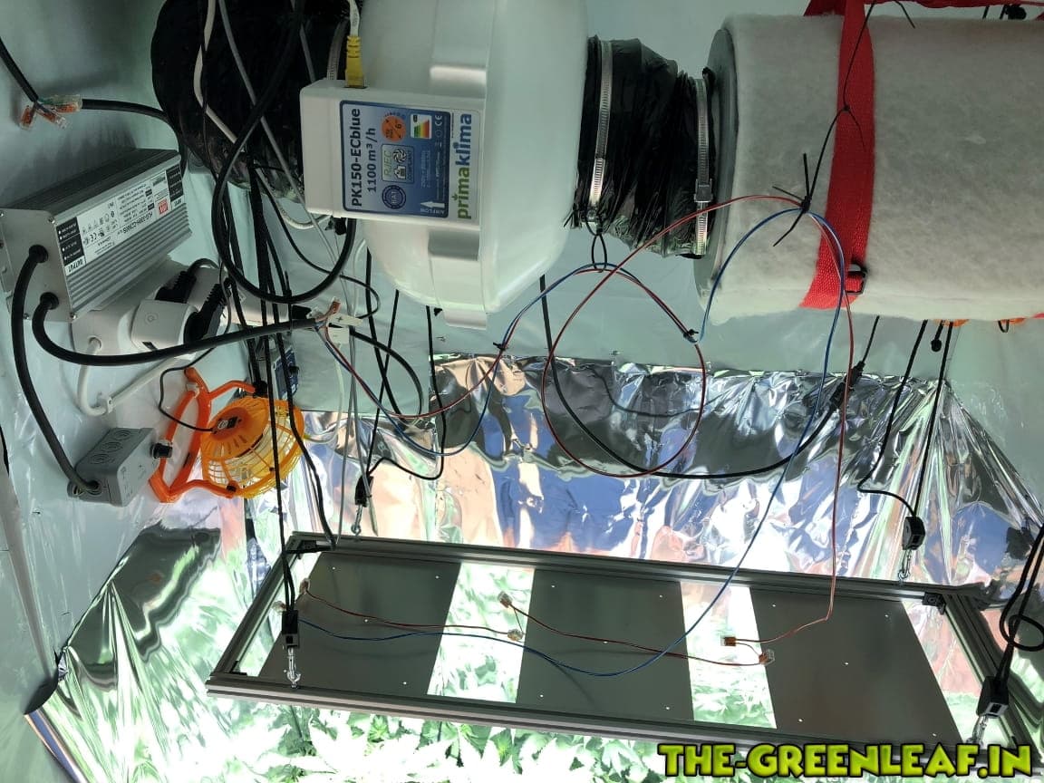 Hab die LED Sicherheitshalber auf 50 CM Abstand hochgeschraubt und auf ca. 75 % gestellt, weil ich die Temperatur sonst nicht im Auge habe.