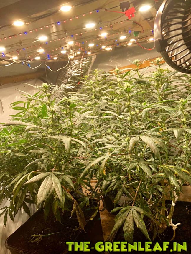Kurz zu den Fakten: Lampe strahlt jetzt mit 360W--450Watt hatt ich ne Woche lang seit Blüteeinleitung, wird jetz abba zu warm, hatte 31grad inner Hütte...