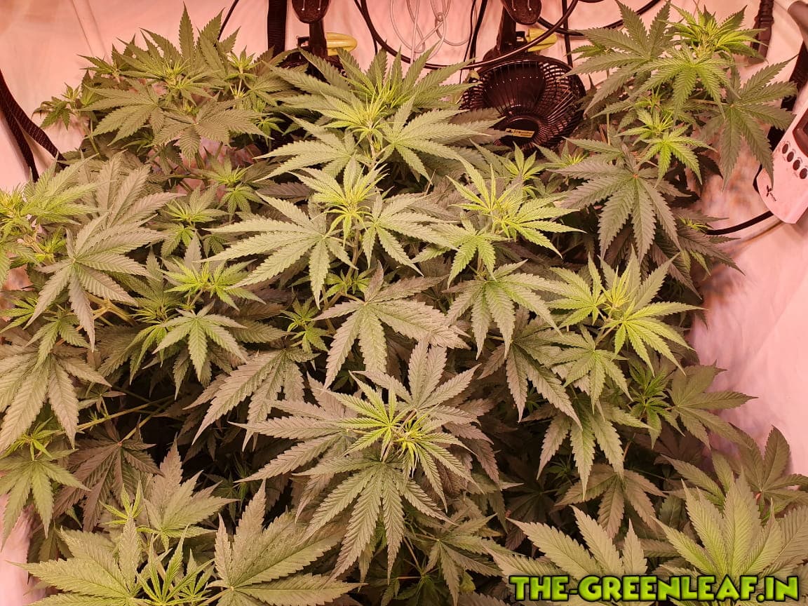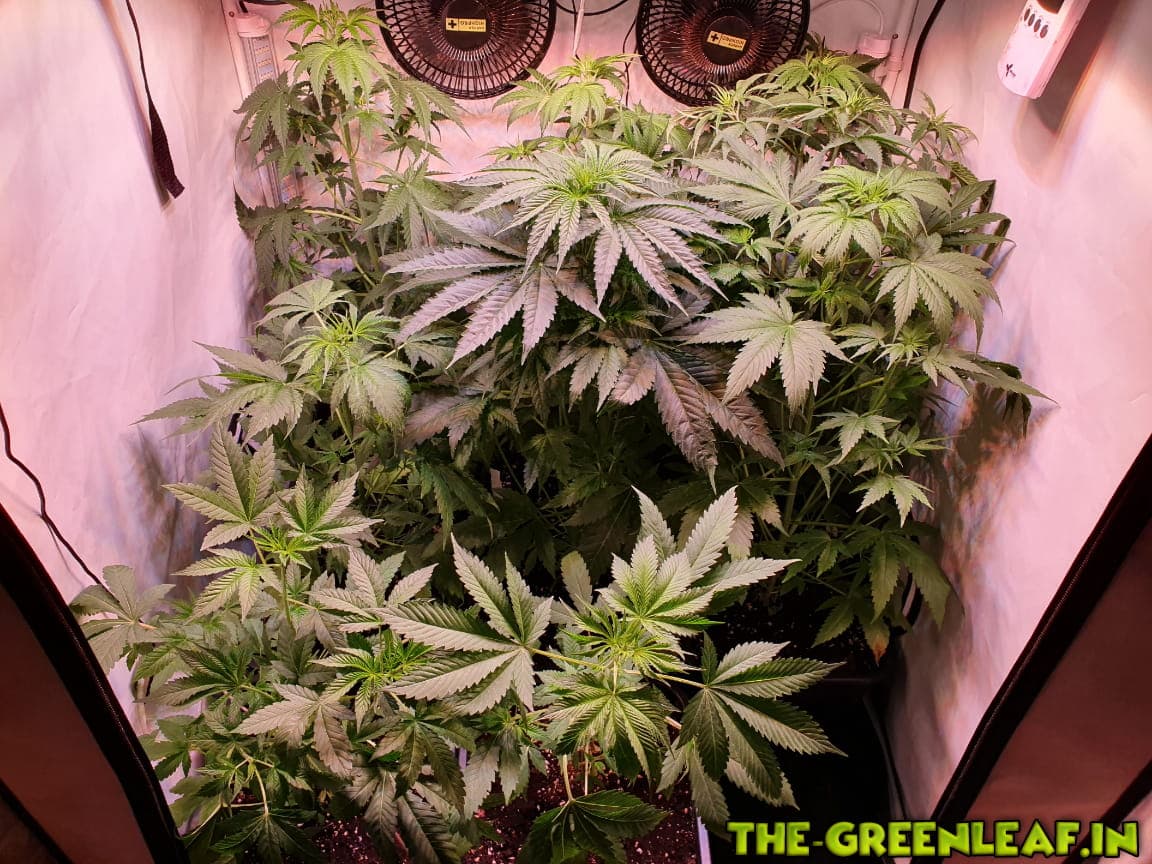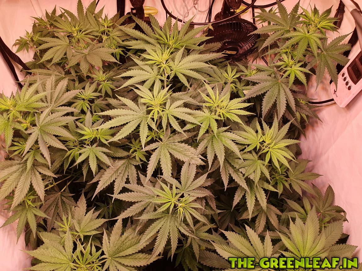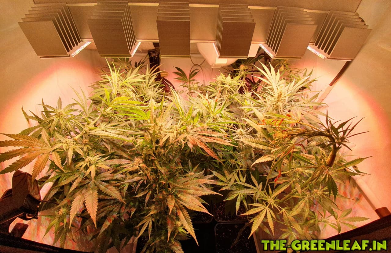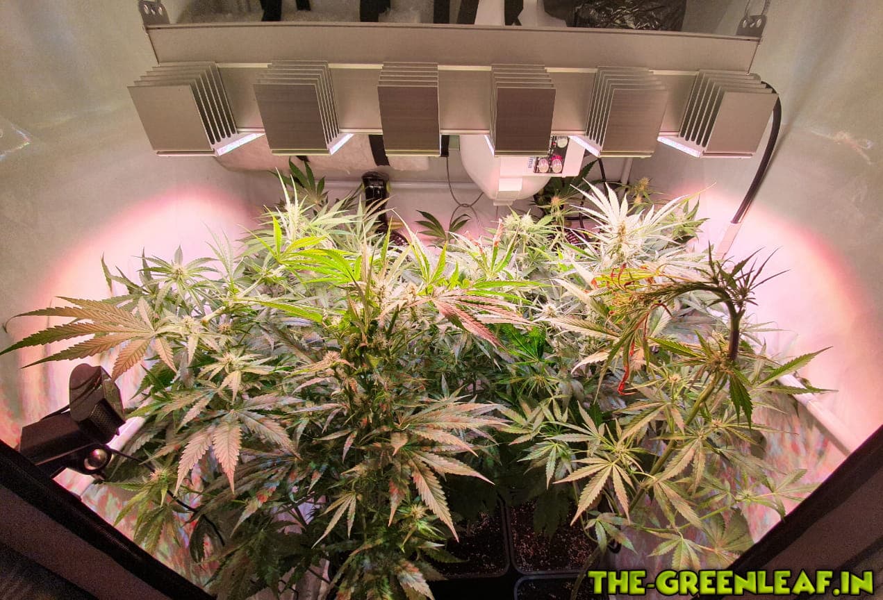 Die Temperatur steigt bis auf 34°C, obwohl die Abluft auf 20% läuft und das Zelt sich eng zusammenzieht.