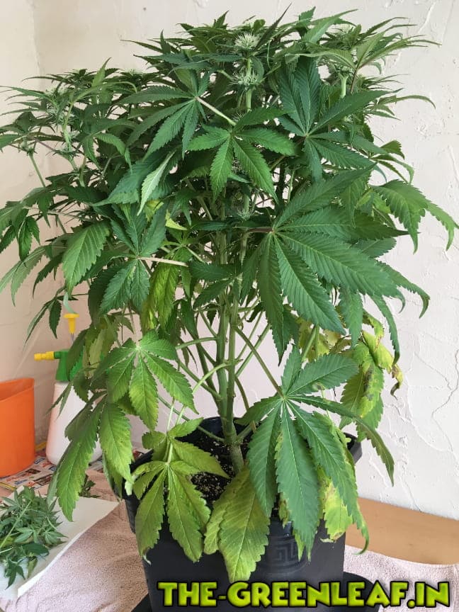 Lass die da drin und dünge vorsichtig. Und keine Panik über all das schlaffe und gelbe Blattwerk unten und seitlich. Das ist absolut normal. Weg reißen und die wird langsam echt kahl werden. Ist jetzt so, wird trotzdem ein schöner Ertrag, denke ich.
