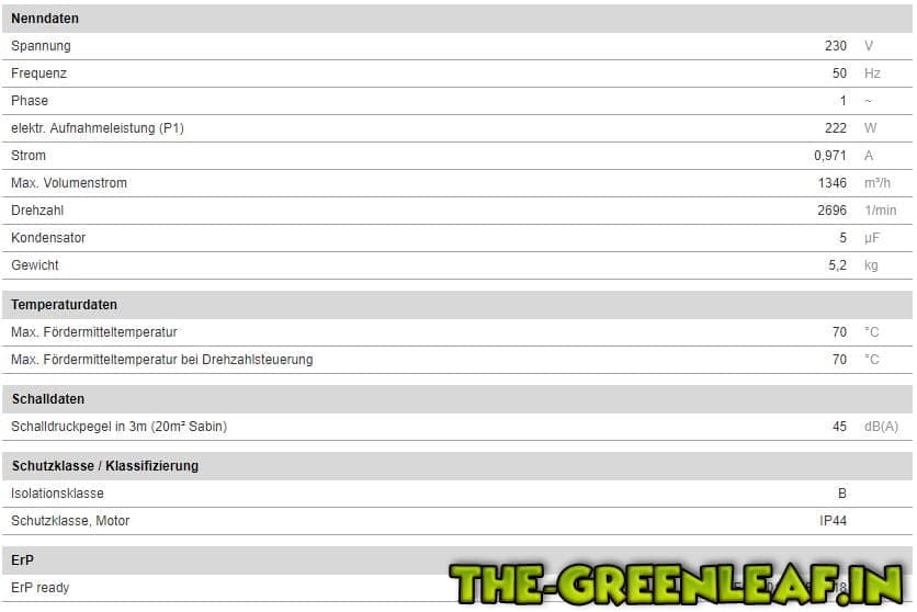 Der Lüfter verrichtet seinen Dienst, wie er soll, aüsserst gut sogar, ich habe ihn in Betrieb, allerdings mit einem Drehzahlsteller geregelt, so bleibt er schön leise. Was mich stört ist der nicht ganz tolle Stromverbrauch. Datenblatt findet man keines im Internet, ein Stromverbrauchmessgerät sagt mir 130Watt bei Vollast und auf 25% geregelt immer noch ca. 95Watt. Finde ich persönlich etwas krass, aber dennoch bei diesen Dimensionen okay.