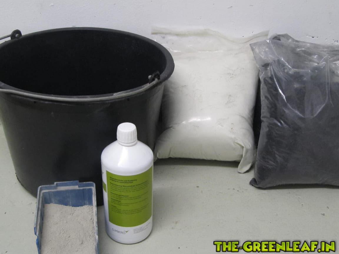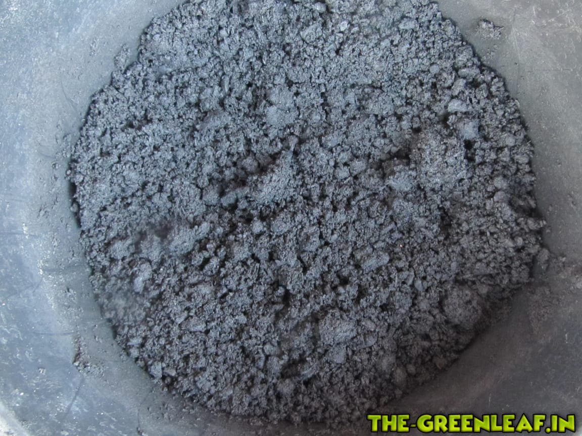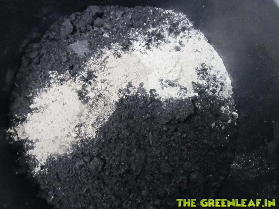 5-10 Liter Pflanzenkohle werden mit 1% Urgesteinsmehl und 1% Zeolithpulver vermischt.