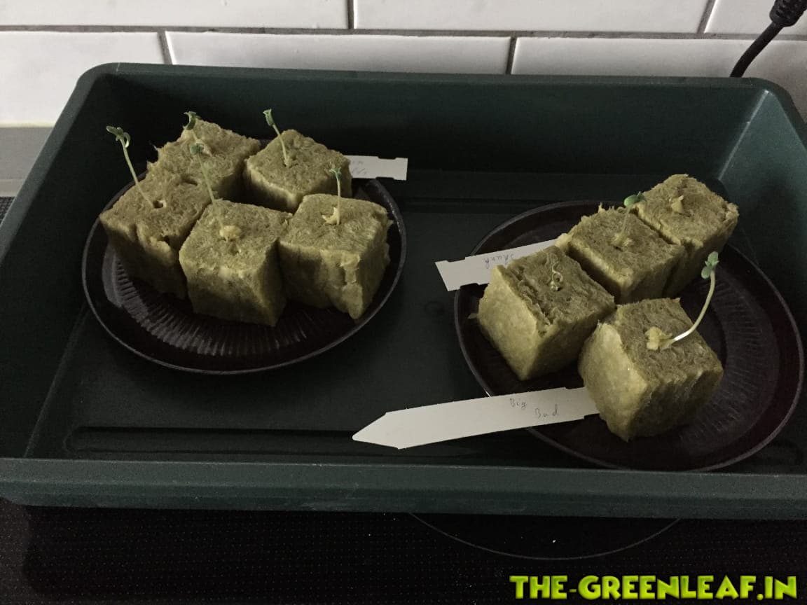 ich hab am 29.7 diese 9 Samen zum keimen gebracht und zwei Tage später alle in Steinwolle Würfel in einem Mini Gewächshaus auf die Fensterbank gepackt. Als ich die dann in die ersten Töpfe packen wollte ist mir ein kleines Missgeschick passiert und das Gewächshaus ist runtergefallen und alle Steinwolle Würfel waren durcheinander.