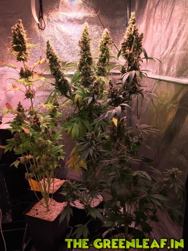 In dem großen Zelt stehen zzt. 4 Blue Mystik, 2x in 12L Pflanzsäcken und 2x in 7l Töpfen. Ich hatte das so gewählt weil das perfekt das 40*40 Zelt ausgefüllt hat, leider waren die beiden in den Pflanzsäcken so munter dass sie mir buchstäblich durch die Decke geschossen sind, ich habs zuerst mit runterbinden und später mit knicken probiert, aber da hat nur ein Notupgrade auf das Zelt oben geholfen