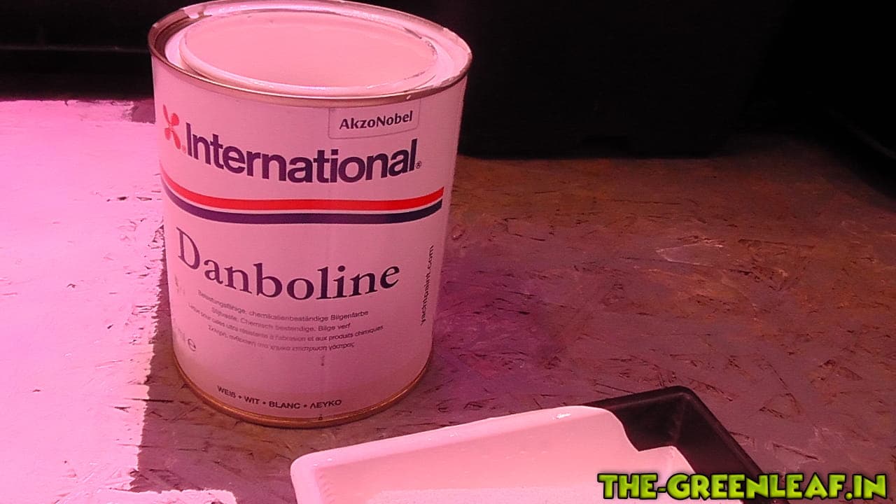 der selbstgebaute Pflanztisch aus OSB, habe ich mit Epoxid Sperrgrund und Bilgenfarbe Wasserdicht gemacht