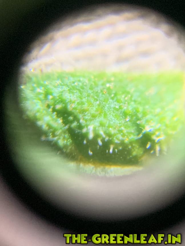 Anbei hier ein paar Bilder. Die Trichrome auf den ersten Bild sind auf einem Blatt, die Trichrome auf den restlichen Bildern sind alle auf den Blüten verteilt.