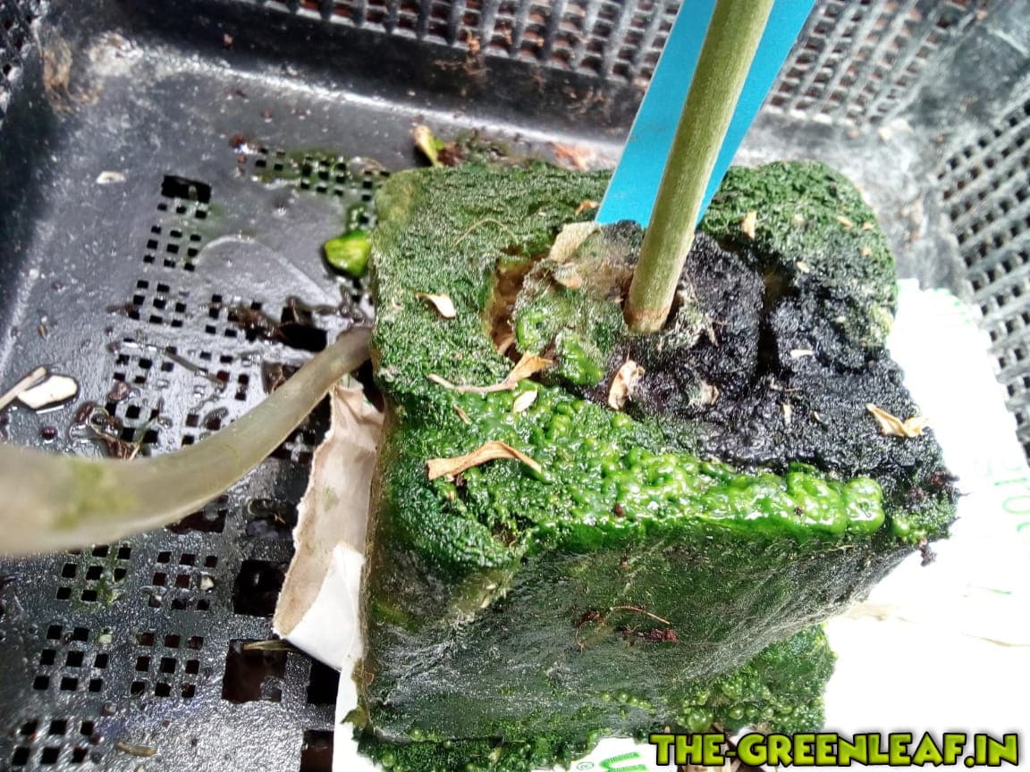 walum? ist doch nur bissl alge, kein schimmel.kannst das schwarze abkratzen, bzw die steinwolle mit dem schmodder abzupfen, und lichtdicht abdecken.