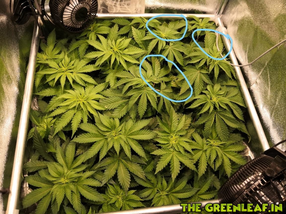 Bei meinem momentanen Grow (dieses Mal ohne Report) haben bei einer meiner vier Pflanzen einige Blätter bräunliche Stellen bekommen. Grund zur Sorge? Kalziummangel?