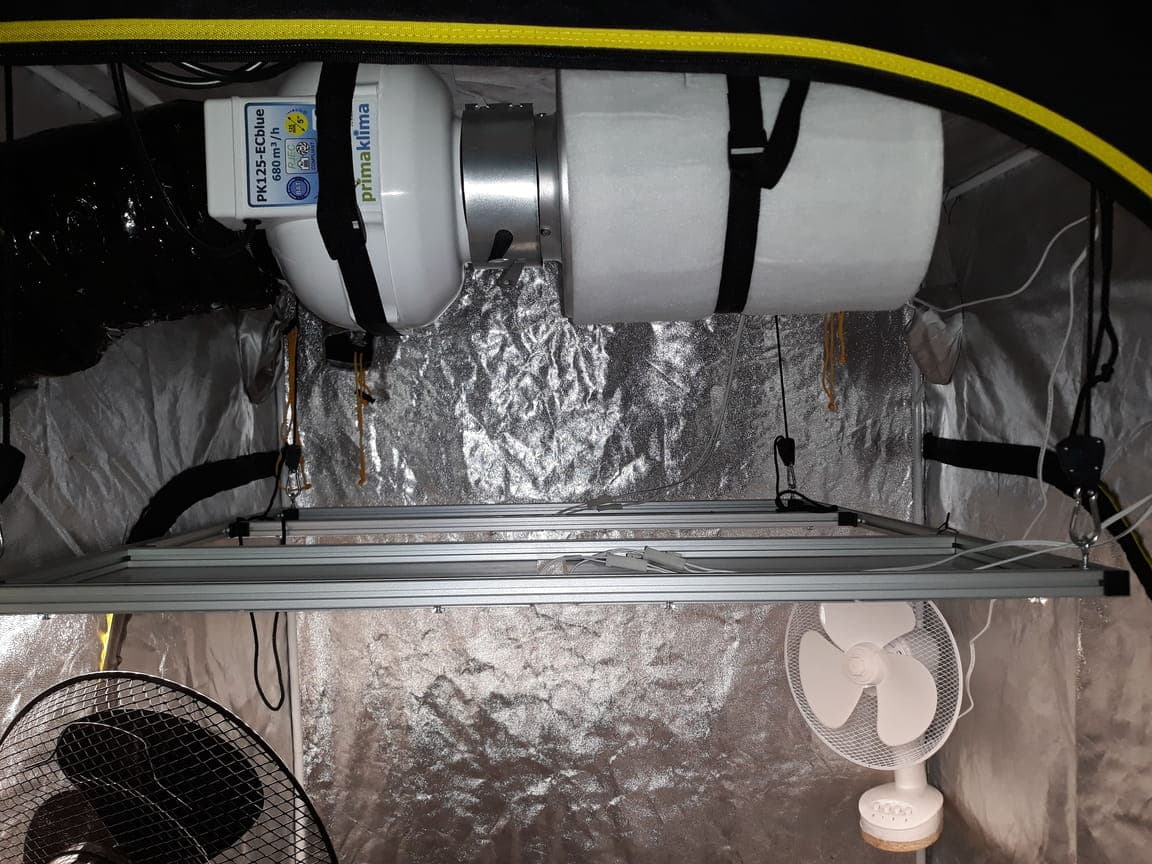 Edit: Hab nun nen Rhinos Pro AKF mit 600m3/h, plus den besagten Prima Klima 125 EC Blue RJEC gesteuert durch einen Growcontrol Fanbase EC.