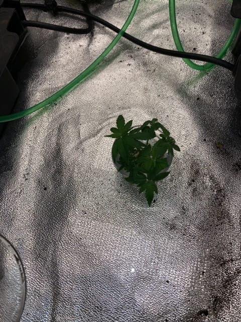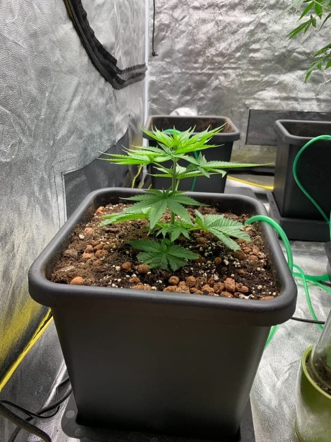 Hab nun den Setzling mit den sichtbaren Wurzeln eingetopft, den 15 l. Pot bewässert und hoffe, dass durch den Sauerstoff von unten sich die Wurzeln nun schneller bilden.