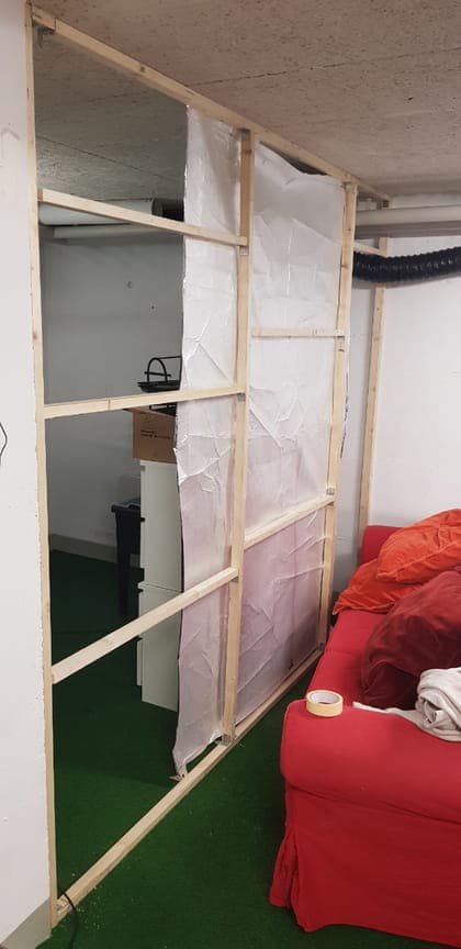 Der Rest gibt ne einfache Wand. Regale davor, fertig