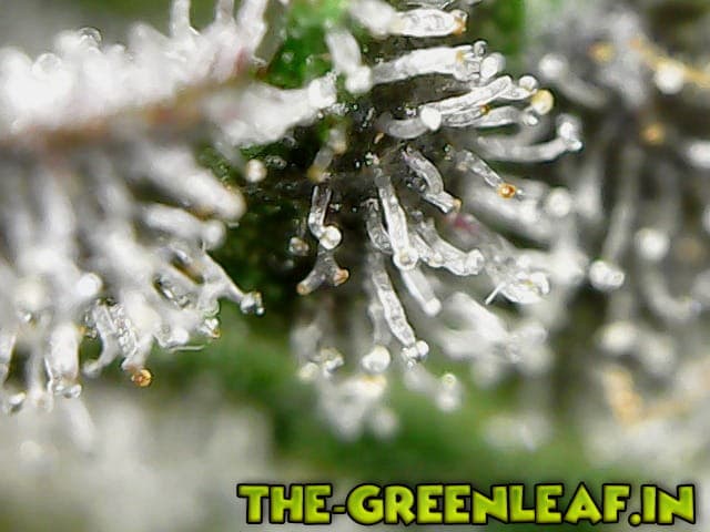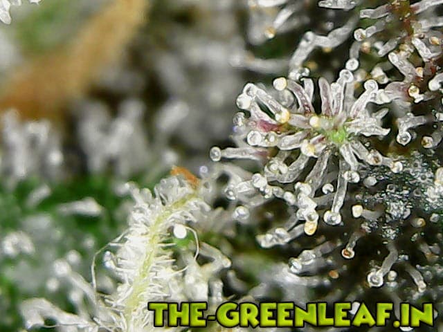 Eine Dame ist richtig blau geworden. Von dieser habe ich heute eine kleinen Bud aus der Mitte genommen und mal Fotos von den Trichomen gemacht.